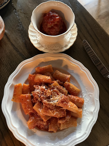 Rigatoni Amatriciana with a side of meatball - STAR of the show. It looks so simple and plain pasta with red sauce. You're wrong! The guanciale adds so much flavor that it was hands down one of the best Italian bite/dish I have ever had in my life.