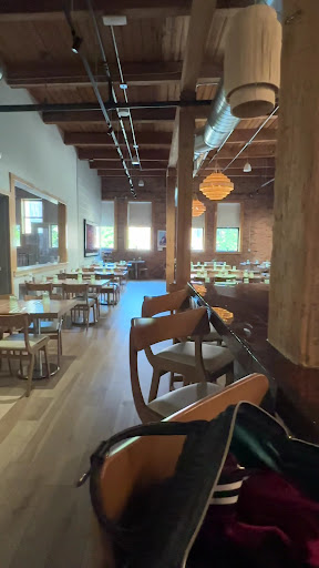 Atmosphere: Extremely cozy atmosphere. Warm lighting. Thoughtful design. Neutral tones of browns and greens. Esthetically pleasing to the eye down to the seating and green...