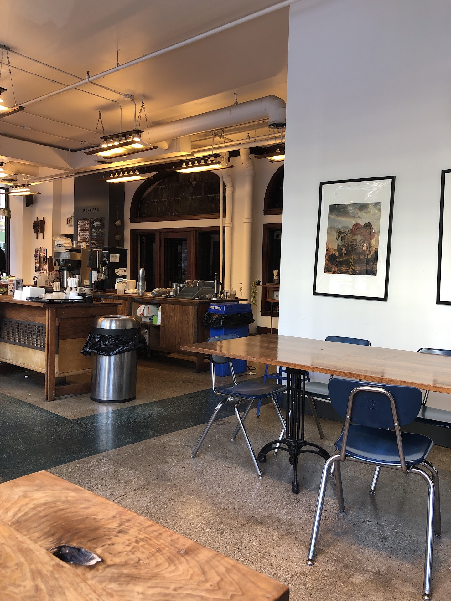 I ordered a pour over and had a seat in one of the well stuffed chairs near the entrance. After getting acclimated to the heat in the room, it was a pleasant experience. A few minutes later I was consuming a delicious hot beverage. Once finished with my coffee, I returned to the counter and ordered an espresso, which was promptly crafted and ready. I was a tad disappointed it was a single shot, but it was...