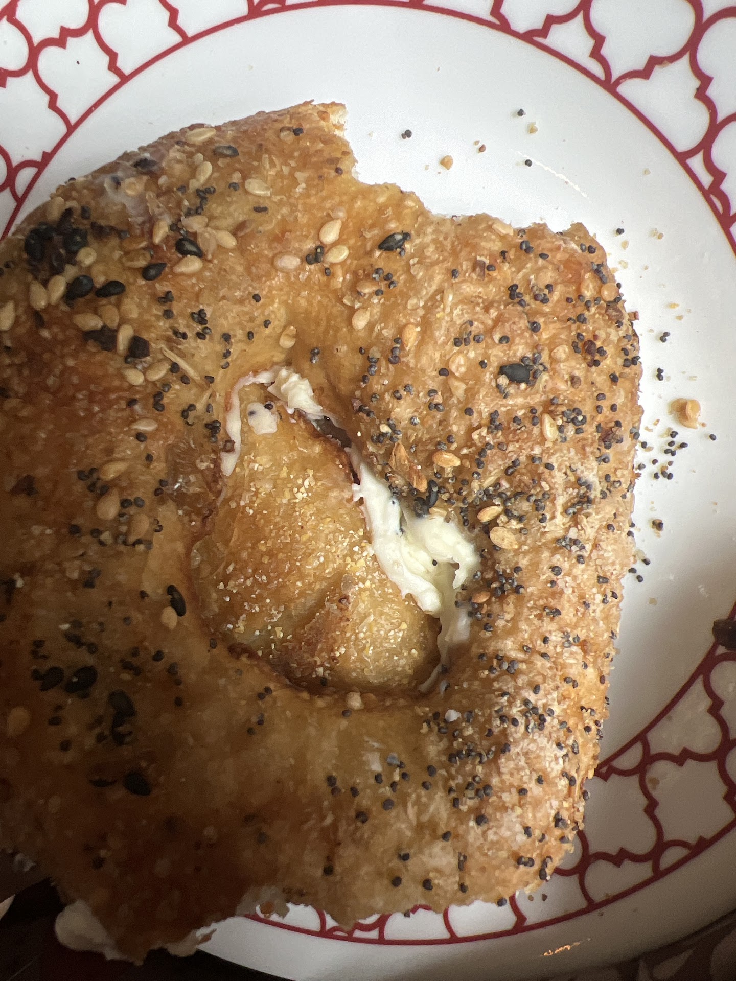 Read moreWe have been their regular customers and usually buys bagel with coffee. Honestly, coffee was never great but it’s the closest cafe which gives option of bagel and coffee. Bagel was something which I personally always liked. However, it’s been couple of months, they have started adding a lot of salt on top of bagel. I ignored for a while thinking it’s not a big deal and mistake happens from everyone. But the amount of salt has been increasing dramatically. I have to throw upper half always since last few months. You can see in the picture I have uploaded. White granular visible on top of the bagel is all salt. It’s still less than actually we received bcoz I heated it up and removed some salt by hand. Other than salt issue, Bagel is tasty and perfect chewy with the combination of coffee. So, deserves 2 stars at this moment.