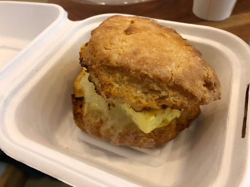 They have Vegetarian quiche available (which excite me) along with a veggie dandwich, and a Brie Sandwich with fig jam (also enticing to me a s vegetarian), but with biscuits on the menu, thatās automatically the direction I default to. I had the egg and cheddar biscuit. I asked if they could make it with egg whites and they said ānoā, they get the eggs this way so it was a bit disappointing to me to learn the food was essentially not made to order. It also tasted a bit-reheated which is kind of obvious to tell with biscuits. It was also too hot when I received itā¦the cheddar cheese on it was over-melted and didnāt have much of a taste. It tasted like I was getting biscuit and egg. Cheddar on a biscuit should be not quite so melted so the cheddar flavor shines through.