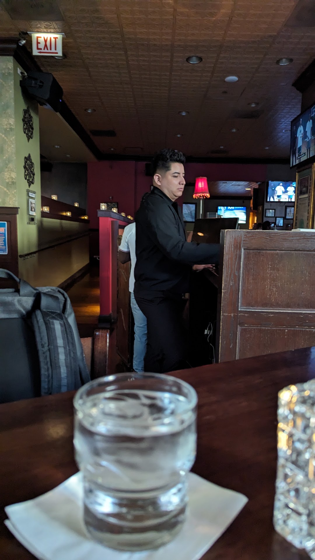 We wanted to stay but it was a clear mark that the new Bartender was not up to the task especially being fresh. Also show how well the very busy and end of shift people wish I new the first Bartenders name was.