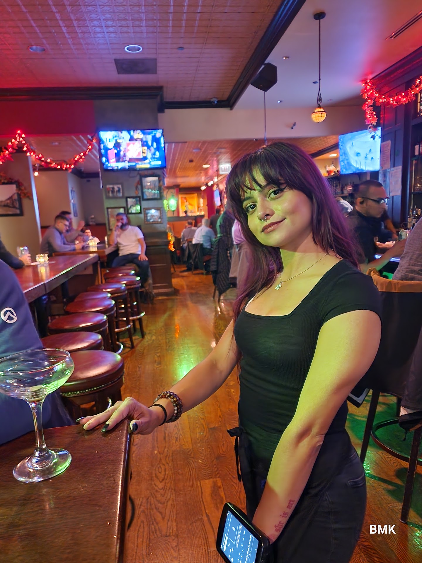 We wanted to stay but it was a clear mark that the new Bartender was not up to the task especially being fresh. Also show how well the very busy and end of shift people wish I new the first Bartenders name was.