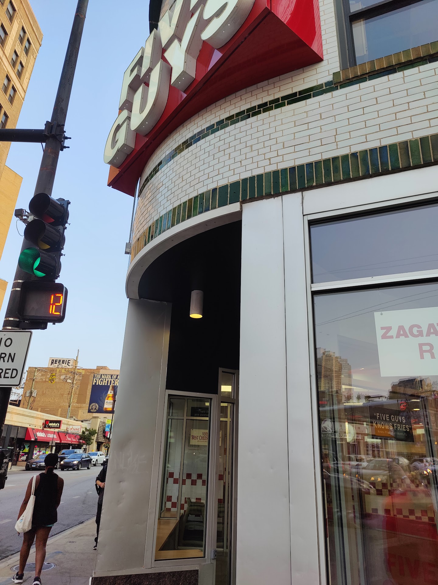 My daughter and friends visited Five guys after a day at the beach. When trying to get situated and turn on their phone, before ordering and getting ready to pay with apple pay. When the cashier and manager became hostile with them. My daughter explained to them repeatedly calmly that they weren't hanging around and we're simply trying to order food and eat, but needed her phone to turn on to pay for their meals. Being that she doesn't carry cash, to prevent ever getting robbed. The man became very aggressive and chased them out of the restaurant all the way to the middle of the street. When my daughter and her friends express the fear and how unsafe they felt. The man kept saying, "What are you going to do, taunting them. He even cross the street with them . My daughter called me immediately before we decided to report it to the police. These employees we're unprofessional and definitely racial profiling, my daughter and her friends. They we're aggressive and a threat to their well-being. I understand the city can be unpredictable, but this was unacceptable and does not represent a welcoming, safe environment for anyone...