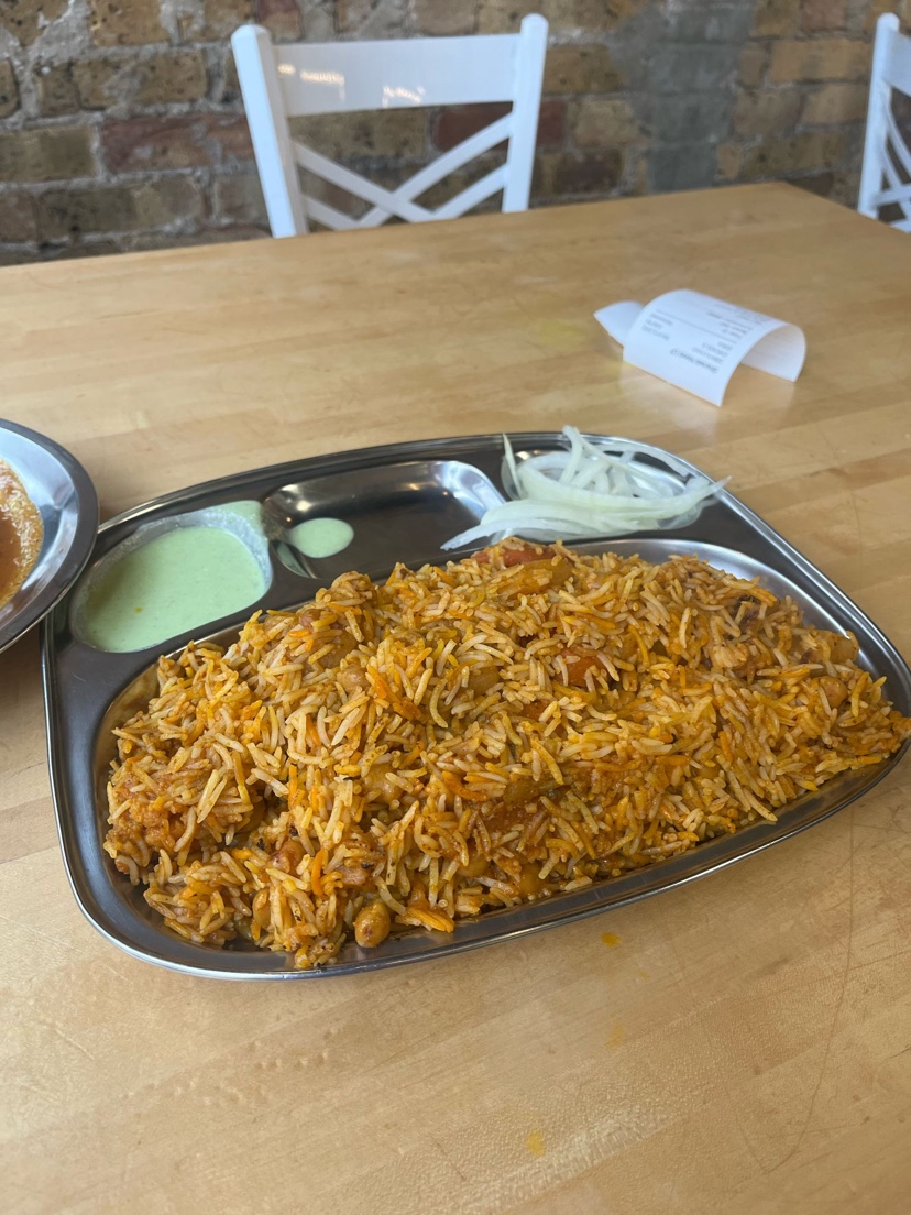 Food: I ordered the vegetable biryani and a spicy potato curry as a side. The biryani was far from what I expected. It lacked vegetables, and the rice was overly sticky, drenched in gravy to the point where it didnât resemble biryani at all. The plating was unappetizing, and the flavor was underwhelming. The potato curry was equally disappointingâthe potatoes were discolored, and the overall quality and taste were subpar. You cannot customize the flavors (make it spicy/less spicy) of the food as they were all pre-cooked. They will heat and place you as you order