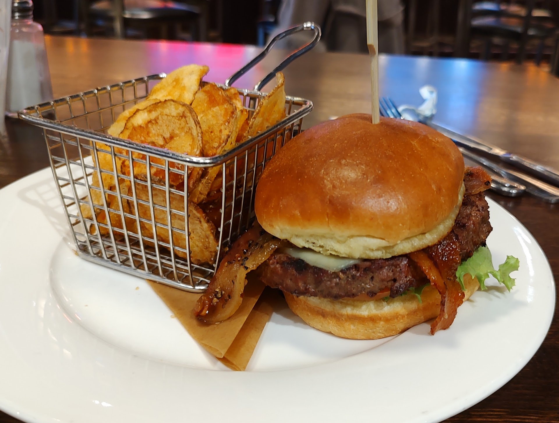 Me and my mom ordered their cheeseburgers (she got the double one and I got the triple one) with french fries.We both liked our food.My burger was very shockingly well seasoned and juicy and my french fries wasn't the crispiest I ever had but more crispy than I expected after I asked them to fry them very crispy.I ordered a "soda water" to drink and they had that too.I wanted to get a free refill of their great "soda water" but the food was so rich or filling,I decided not to ask for a refill.The things I don't like about my Debut and probably my only visit at this "franchise" restaurant,is our female waitress asking my mom and me especially if the food was okay and if we or I am doing okay over 50 Eleven Million times literally.A waitress asking me that one time genuinely is cool.Asking me that more than once gives me that "rushing me out of the restaurant" energy,which is inherently disrespectful and suspect,period.Atmosphere or Ambiance wise,the interior lighting in this restaurant is dim with comfortable looking booths and less comfortable table seating options.They also have three restrooms ladies and gentlemen.One for males only.One for females only.And "One for Both Genders" to use actually.The male only one has decent looking interior with old-fashioned style multiple faucet sinks to wash your hands with.I couldn't get any hot water out of any of them though very strangely.I literally couldn't tell which knob was for hot water.This is totally inexcusable,just like the piss stain I saw on the toilet seat in one of their toilet stalls.I saw a paper towel on the floor too,and some inexcusable dinginess in other toilet stalls too.The music I was subjected too during my entire visit at this restaurant was not my type and turned up a little bit too loud volume wise for my taste too.Mom probably thinks that I will be back on my own in the future,but that is definitely NOT the case at all though,especially if I have to pay for it.I felt a strange allergy or allergic reaction in my throat just hours after getting back home from eating at this restaurant by the way.I don't know if it's because they don't have hot water for the employees to wash their hands the proper way,or if it's because they don't wash their hands at all to begin with or not.I am NOT going back there,period.One of their male employees was cleaning nearby tables while me and mom was waiting for our food and while we was eating our food too.He was spraying these nearby tables with so much of that detergent or toxic chemicals spray,I was thinking to myself "is he trying to make it an unpleasant environment for me and mom to eat their exclusively"???????? This is the kicker though:These nearby tables were NOT dirty nor trashy looking at all for him to be spraying the hell out of them with all of his...