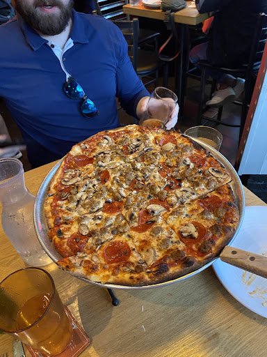 Read moreWent here this Sunday evening for a date night with my husband and puppy. Loved the food, we got a large pizza, salad to share, two drinks and a dessert and finished every last bite. Everyone was friendly and welcoming and even very sweet to our very active puppy. My only complaint is that we werent informed that it was card only and they didn't accept cash. We had only brought an emergency card with us ( which we keep less then 100 dollars on) but more then enough cash to pay the bill and leave a generous tip. Its a pizza place with a bar and patio, so we assumed cash was fine. It wasnt posted on the menu, website, on a sign or told to us by our server upfront so when it came time to pay it was a bit awkward. We paid what we could on the card , but had no choice but to give the rest in cash as thats what we had and were not close to home to get another card. We felt a bit like we were putting them out. The only way to give us our change was through our personal Zelle account. Now we totally understand why they're doing this , as they have experienced some robberies of late. But we just wish that it had been made clear from the beginning, so we could have made more informed decisions when ordering. We appreciated them working with us, and made sure to leave a nice tip as it wasnt our servers fault, but we did feel awkward in the end. Especially when we had no choice but to give our personal number in order to get change. Which i assume was coming from our servers personal bank account, as he was using his own phone. Maybe having a sign or it even printed at the top of the menu would be helpful. I understand most people carry cards on them, but we just didn't that day. Definitely will be going back, but will be better prepared and make sure we have the right form of...