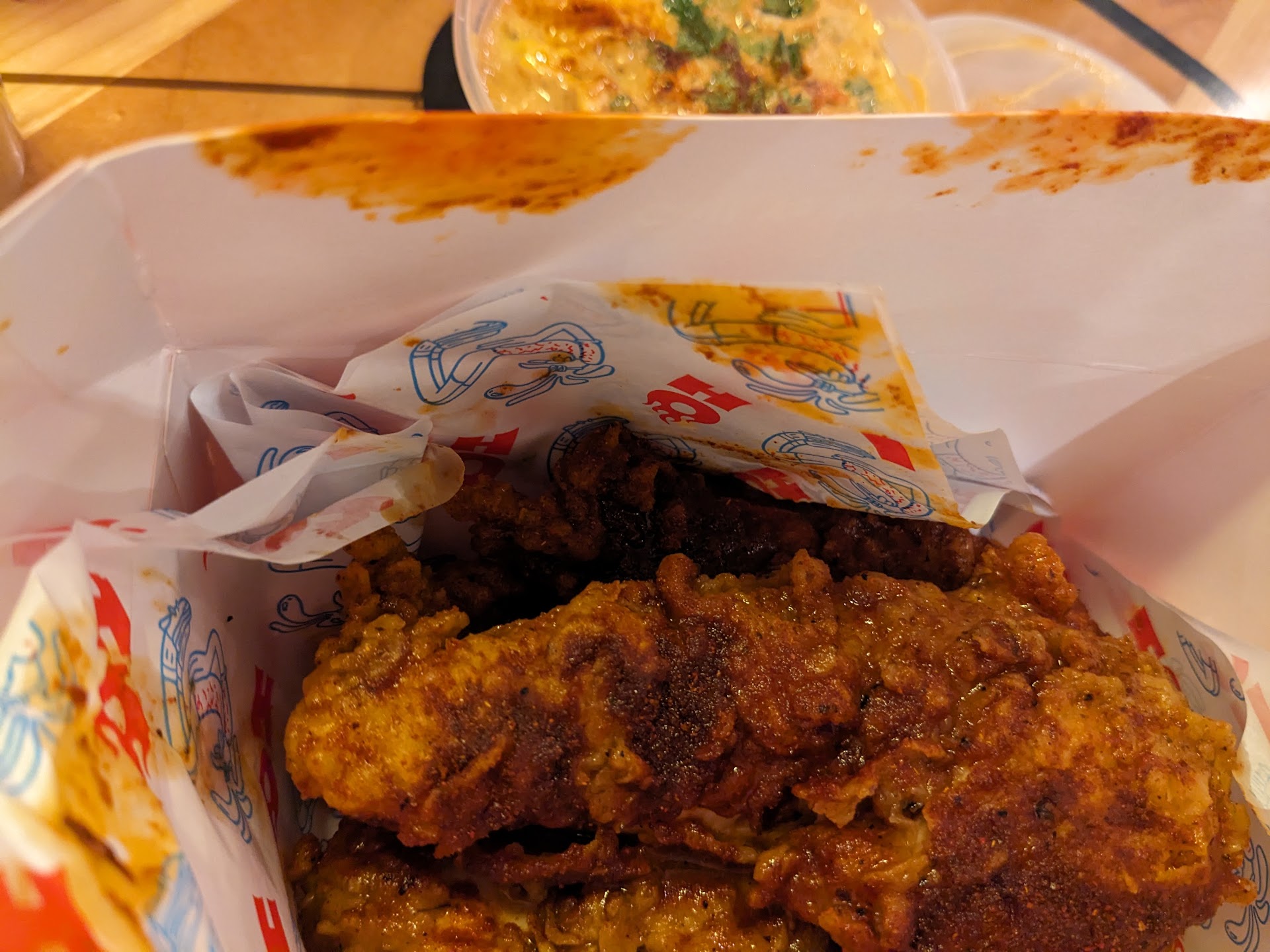 If you visit Hot Chi, you'll have several options, all of which are very good. I got their Popeye's "rival" sandwich and cheat fries along with Peach tea. Literally everything was very good about it, the bread, sauce, ingredients, chicken, all excellent. I went with 'Hot' to not overdo it and the heat was perfect, enjoyable but not overbearing. I literally seek out chicken sandwiches and the Roamin' Rooster in DC is probably the only one that comes to mind in this price point that's comparable. They absolutely destroy the fast food versions and even those at highly respected sit down restaurants (which shant be named).