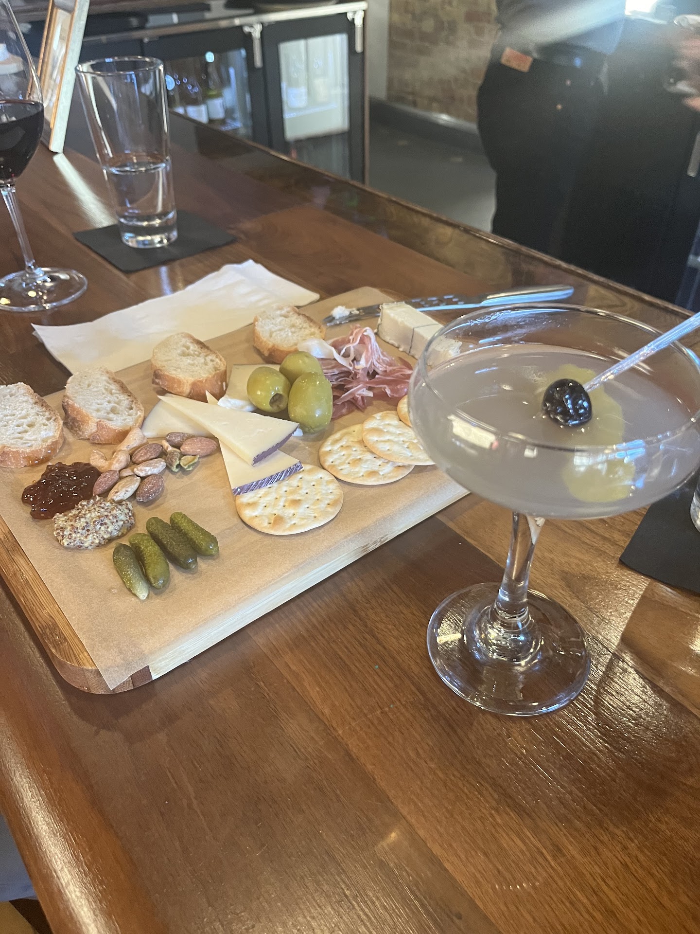 the one food option, a very sparsely put together charcuterie board was severely lacking. like a half teaspoon of fig spread to share between two people, a few almonds, another half teaspoon of mustard, some shredded pieces of serrano and tiny slices of baguette for $20 bucks? no thanks. also geez those knives that have like cut-outs of the word ācheeseā along the blade š (these are not weird and kitschy but they also make spread the cheeses and things more difficult)