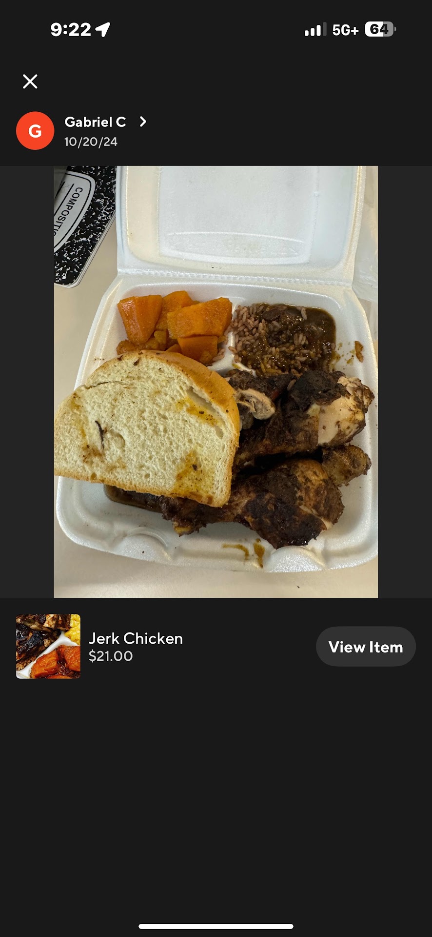 Read moreI ordered from Jerk and Soul Food during happy hour in Door Dash and was impressed by the pricing and portion sizes. I went with the jerk wings and picked candied yams and cabbage as my sides. Everything arrived hot and fresh, and the generous helping even included a bed of rice and peas under the chicken, which was a nice surprise!