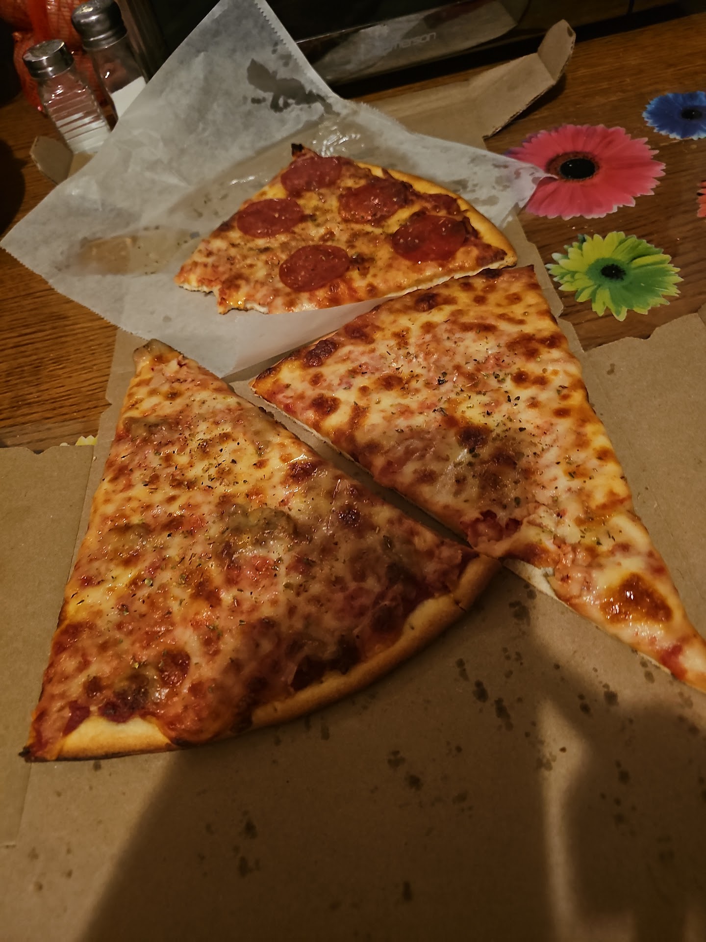 Read moreWalked into the sound of a dying smoke alarm. There weren't any slices out for display to see what my options were. I was offered three different options, cheese, pepperoni or sausage. I decided to keep it simple and go with a regular slice of cheese pizza. While I waited I noticed a sign for free coffee. So I asked. It was instant and that's okay! I just wanted something warm. I was charged $4 for this slice. When I was called up to grab my slice it was already sprinkled with oregano...I wasn't asked or even offered any option of garlic powder, parmesan or said oregano...I proceed to eat my slice to only be surprised that it tasted like a frozen slice warmed up as if it were bought in bulk from Costco.