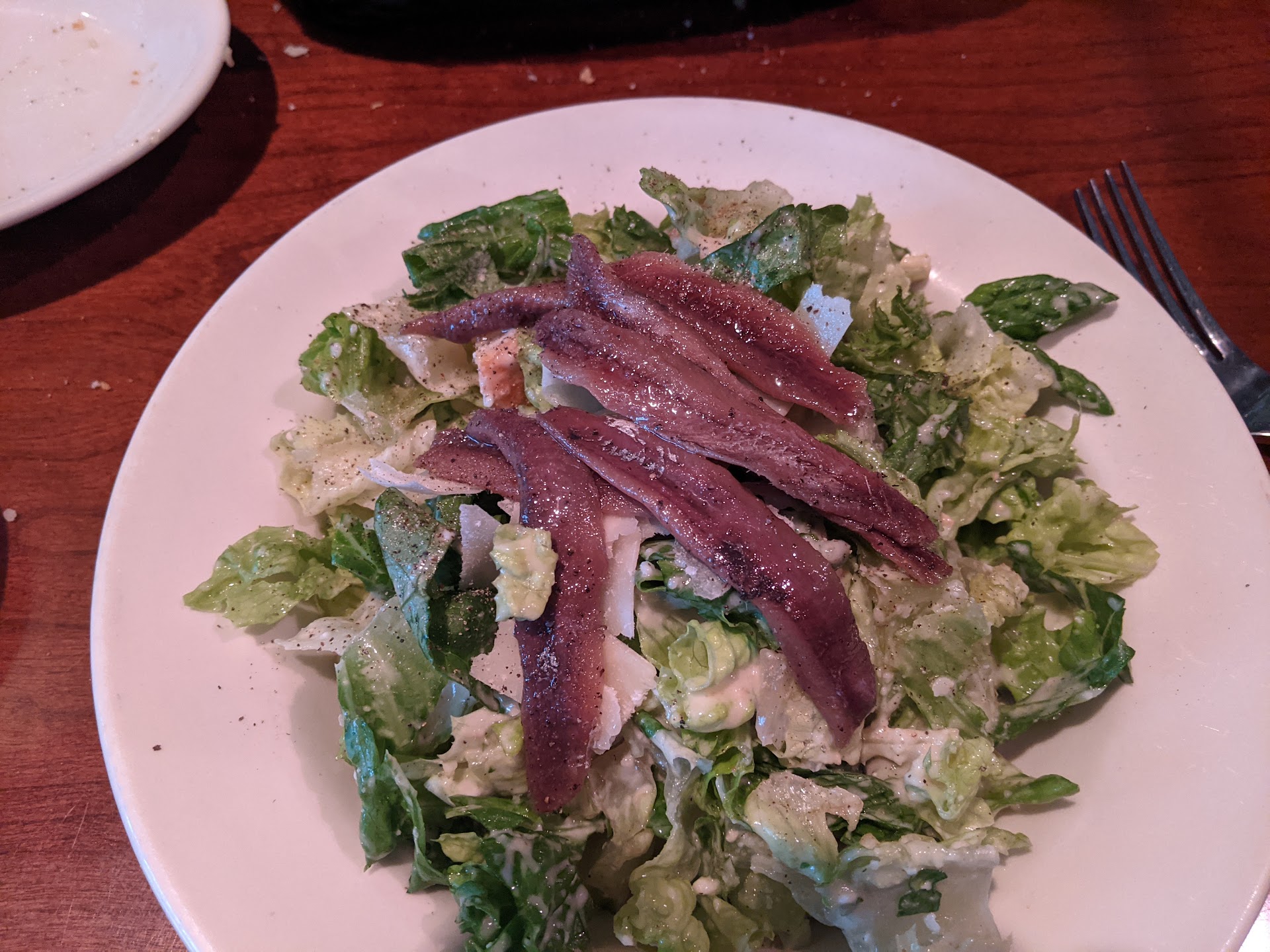 We had the special beet salad which was great. We also ordered a vegetarian pizza to share. Really liked their sauce; not super tart yet not too sweet. It had just the right balance. What was amazing was the crust; Mamma Mia; I LOVED it. The crispness without it being a hard cracker was just right. Wonderful.