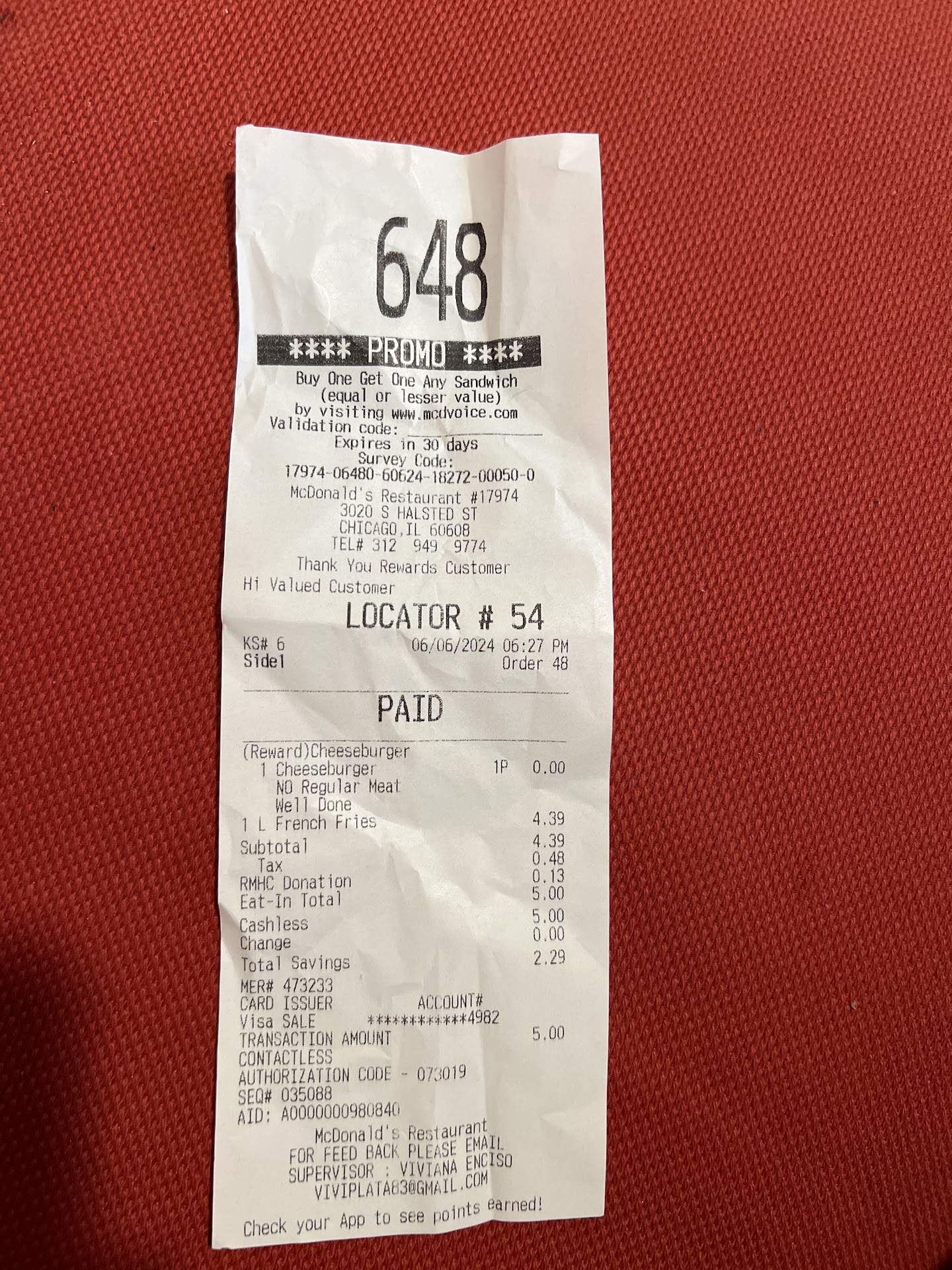 Read moreThis McDonald’s Refused to give me my Mobile order that I PAID for because THEIR App glitched when I put in the curbside parking spot number. When putting in the curb spot number the app took a long time to load then it just closed out on me while it was loading. I went inside to just get the order because that what they app told me to do when I reopened it and the employee told me it was because I took too long, I was there 10 minutes after the order was placed, he said I needed to be there in 5 minutes. He then proceeded to tell me I never paid for it, checked my bank account sure ensure the money was taken out of my account and he wanted me to pay for it AGAIN! He asked multiple times for an order number, I gave it to him over 3 times and he still was refusing to give me the order. Told me I needed to complete the process on the app, which I did follow the process, but again the app glitched. He also acknowledged that the app has issues during this entire conversation but still...