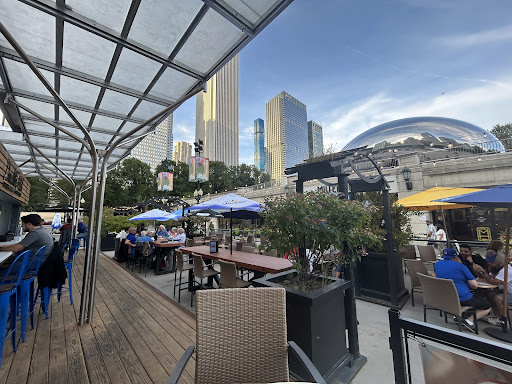 Read moreOur server was David and he was wonderful. He was very kind and understanding and friendly. Fabian was a very nice staff person. This is a beautiful restaurant because it's right where the bean is and it's so pretty to see that and it's nice to do people watching around here. This is also used as an ice-skating rink in the winter and other events happen here. The ambience is nice because you have indoor and outdoor seating. The staff are nice and it's an inviting place. It's also in the heart of all the tourist hot spots downtown so it is a nice place to enjoy food and drinks. They have happy hour 4-6pm where they have $5 dollars off pizza and appetizers. We got the 12” $22 Carni Italiani pizza but it had a little bit of fresh mozzarella cheese and it was super spicy. The meat was tasty. The best part of the pizza was the chewy crust and dough which is not common to find in Chicago. They also have $10 drinks during happy hour. The burger w fries were very good. We even saw a Trump protest against ICE raids and such today while eating bc it’s right on...