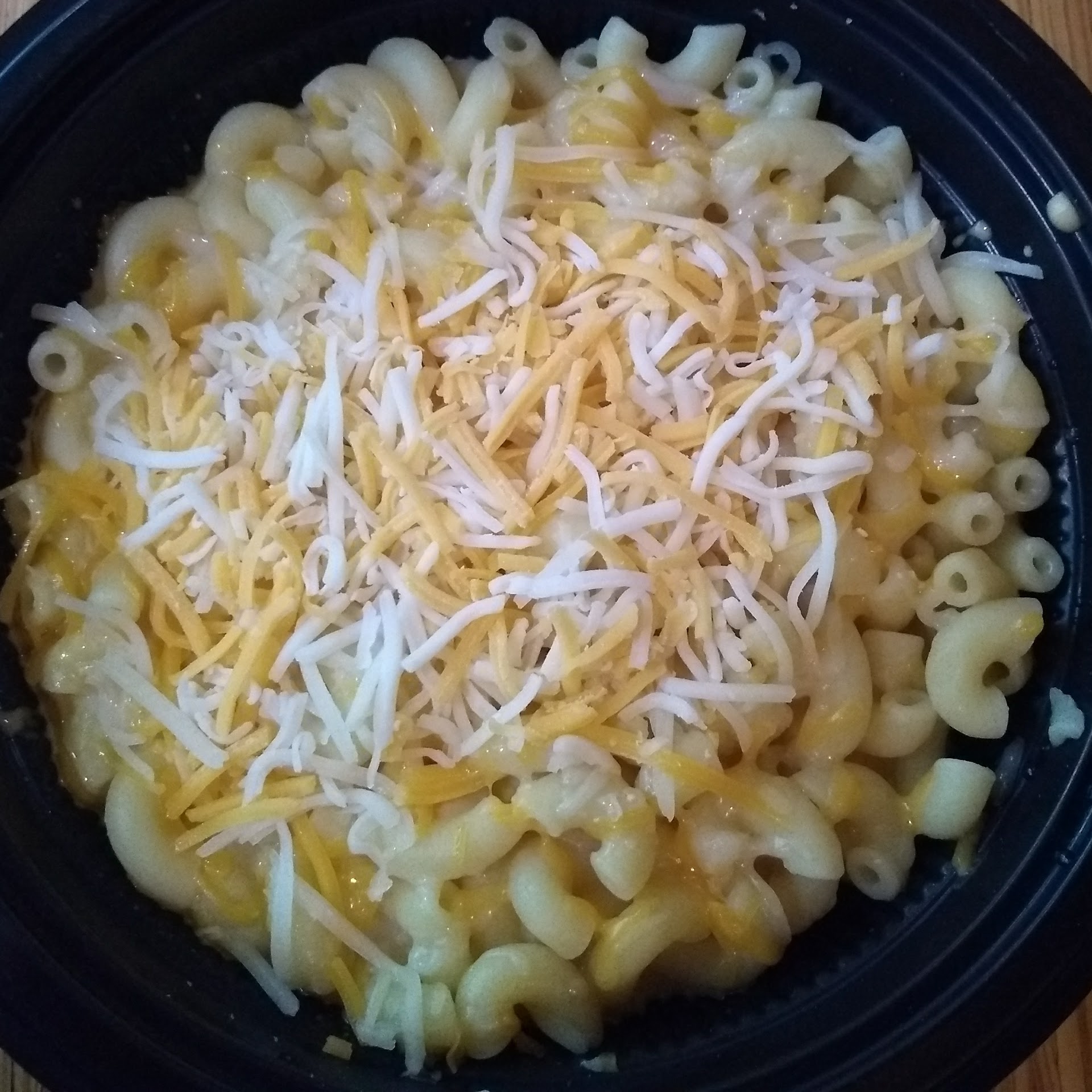 The noodles were sticky and clumped. There was no trace of a gravy or sauce, and a small number of dry mushrooms, as well as some shreds of some kind of cheese, here and there. But the flavor of the small amount of meat was excellent.