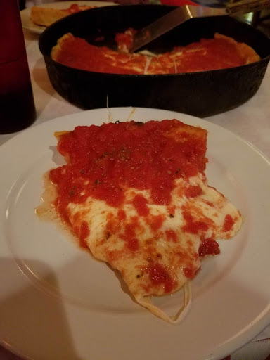 Though this restaurant is not in New Jersey, I just had to post a review on it. My girlfriend and I were in Wisconsin for a wedding and out flight out was cancelled so we had to scramble last minute and got a flight out of Chicago early the next morning. After driving to our hotel, we decided to go into the city to see the Chicago Bean (or more correctly known as the Cloud Gate). While in the city, we decided it would be sacrilegious if we did not try a true Chicago Deep Dish pizza. After a bit of research and a desire not to walk or drive far, we settled on Pizano's, a fairly large pizzeria only a block from the park. The interior was busy with customers and waitstaff. There were photographs that adorned the walls and the seats were very comfortable. The pizzeria also housed a bar and several TVs where people could watch the latest sports games. Everything felt very authentic. The waiter informed us that the deep dish would take about 45 minutes to reach our table and, at first, I thought this was because of the high population in the restaurant. It wasn't until later that I realized that truly fantastic deep dish pizzas take a longer time to cook than the New York style I'm used to.