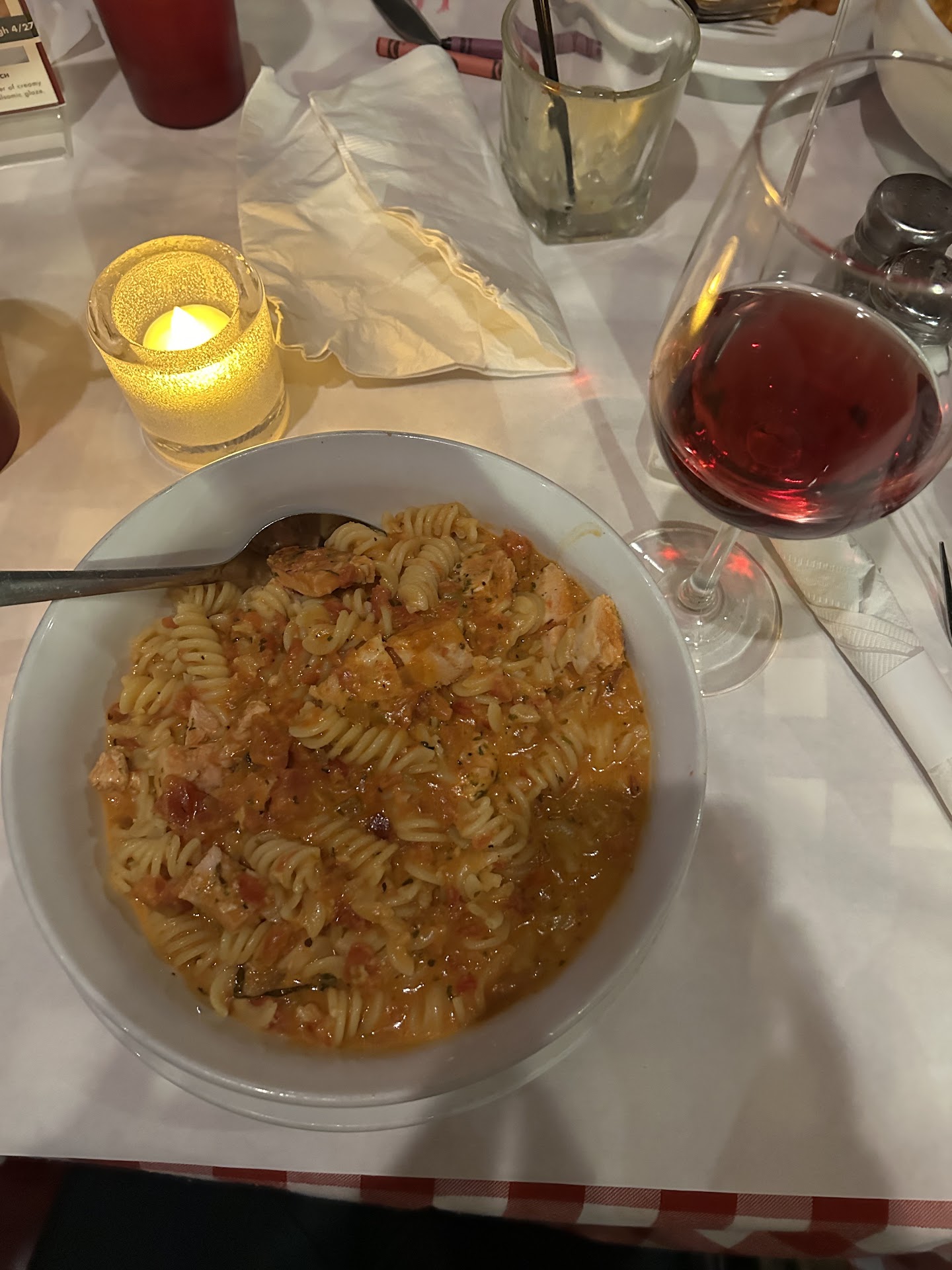 Read moreI was in the city for a conference and ended up having dinner here with another research group. Kaia was our server and she was wonderful! I have celiac disease and I'm very sensitive to cross contamination. She knew exactly what I was talking about and assured me that they would take care of me. She also asked the rest of the table if there were any other allergies she should be aware of and made notes to let the kitchen staff know. After ordering, the manager, Eddie, came over to triple check everything with me and run me through their safety protocols. He mentioned that their employees take a course on allergens and how to handle those in the workplace. It was so refreshing to be able to eat out and not have to worry about being accidentally poisoned. I felt a weight lift off my shoulders. The food was incredible! I ended up getting the gluten free pasta with the vodka sauce and chicken. It was so good I was almost convinced it was real pasta rather than gluten free! The portion was also huge so I had leftovers for days and it was just as delicious! I also got a glass of their sweet red wine. I love a sweet red and this one was just perfect. After dinner, they checked in with me again. I really appreciated the seriousness and their dedication to ensuring that the food they serve is free of allergens. I usually feel symptoms around 30 minutes after eating if I have consumed gluten and I felt 100% fine! The staff was incredibly kind and patient with us (we were a rather large group). It makes me sad that I don't live nearby because I would be back regularly! Kaia and Eddie...