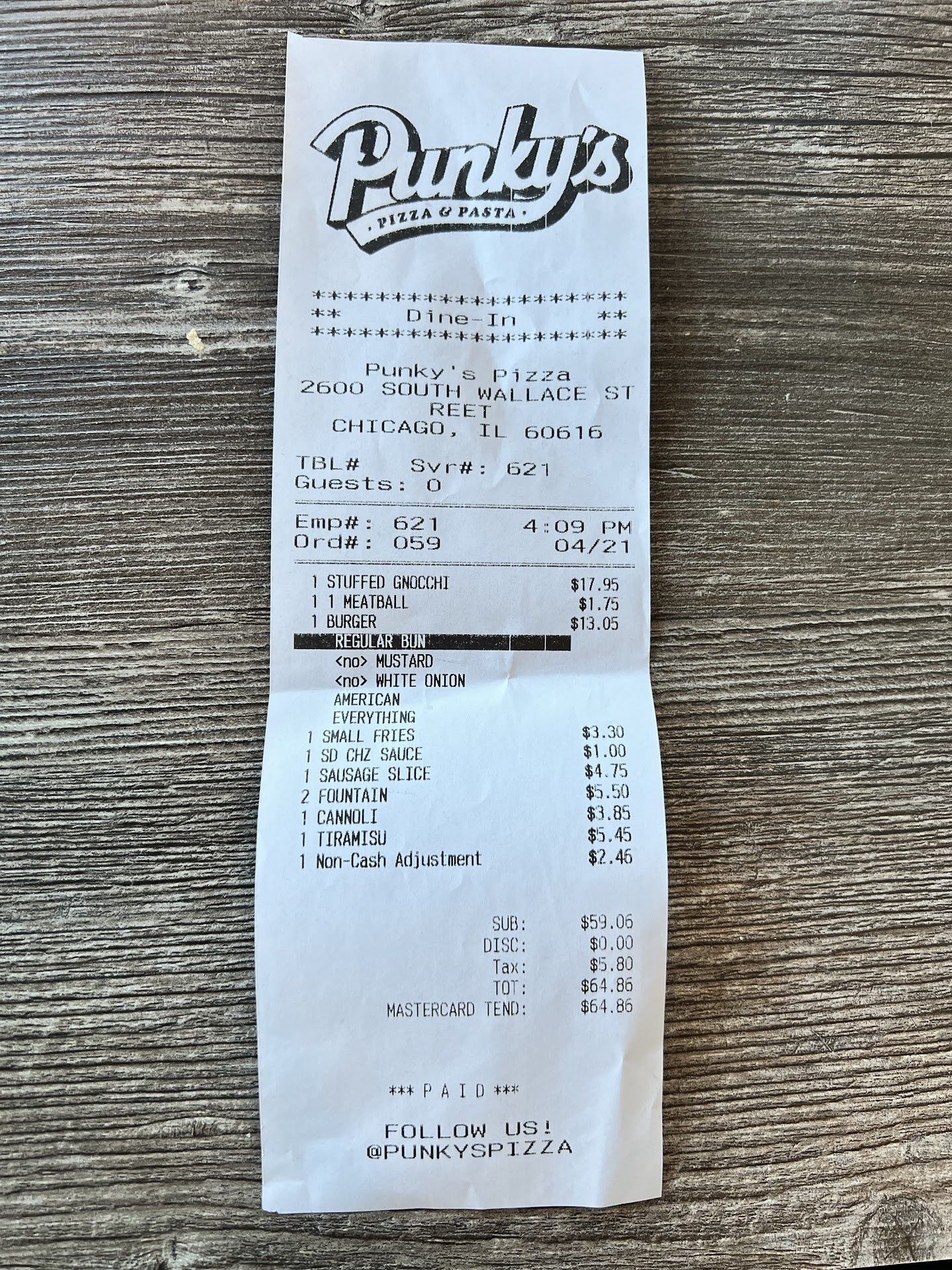 Read moreTerrible! Dont eat here. I came here by accident because the other pizza place was super busy so I did not want to wait that long. So I came here and ordered a regular slice a desert slice and a sicilian. When I got to my room I realized the sicilian slice had a hair on it and some weird brown speckles on the corner. I could not tell if this was human hair or an insect hair. So i threw the sicilian away and called the punkys pizza shop to complain. I spoke to the manager and told her that I found a hair on the corner of that sicilian slice and I can bring it back to them. The manager atleast gave me a refund over the phone for that sicilian slice and told me I do not have to come back. I threw the sicilian slice away in the small box it came in. Disgusting! Also when I was standing waiting for my order...the impression I got was that the workers seem very disorganized and kitchen looks dirty in the cooking area. I found that the food here is very expensive. I will never come here again as it is located in an isolated area near a funeral home and finding a hair on my food and not sure if it was from human or insect source is disgusting. So if you ever come here to eat make sure you scan your food for hairs from unknown sources. Honest review...