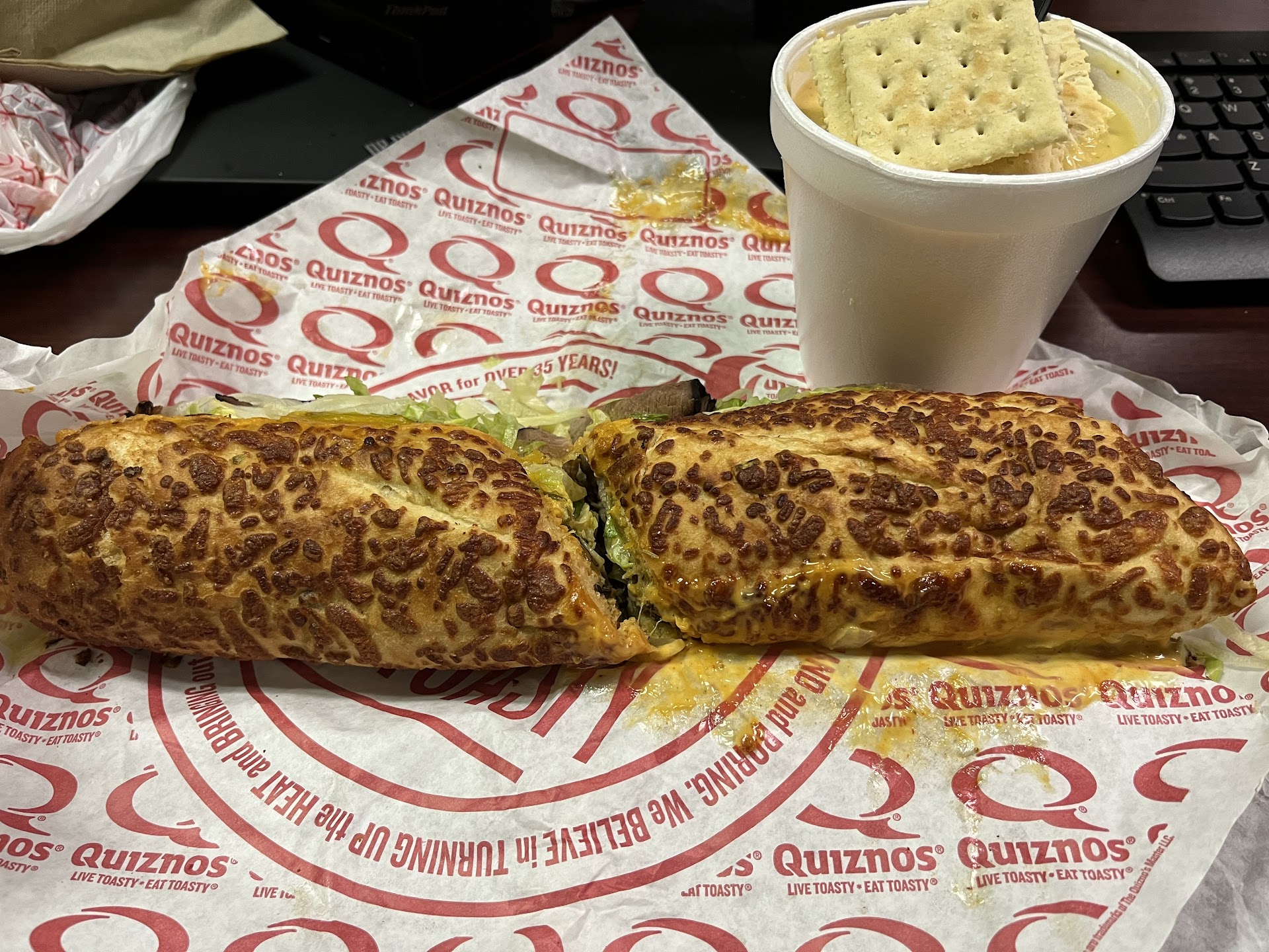 Read moreWhen I was a kid I used to see hundreds of commercials for this place and I always wondered if it was any good. The colors they use are similar to subway but Quiznos is in a league of its own. The bread they use is perfect. It was the so crunchy and soft on the inside. You could tell it was fresh. The sand which itself was a 10/10. My wife and I were genuinely surprised by how incredible the mesquite chicken is. I haven’t felt like that about a sand which in a very long time. I couldn’t even think of anything negative on the sandwich. I hope you guys stay open for many more years because I will definitely be coming back! This chain should be a lot bigger than what it is the potential is...