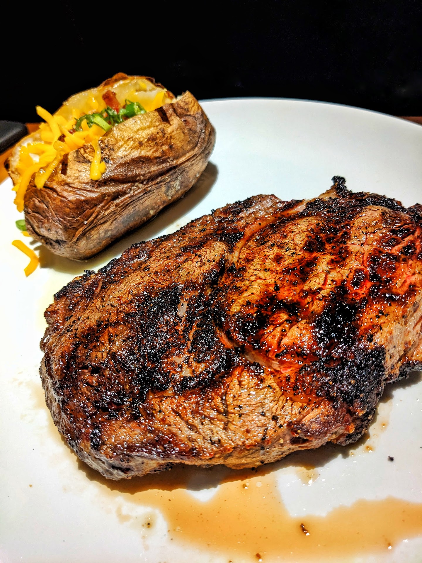 Read moreThe food was really good. I got the Spinach Artichoke dip for my appetizer. Pro-Tip: dip your chip in the salsa to lightly coat it, then spoon some of the Artichoke dip onto it. I figured that out when I was 2/3 done and it was so much better I wanted to cry because I couldn't start over. I had The Remington for my main course; I ordered it Medium Rare, and it was definitely Rare with a cool red center. This thing is thick, they had a great outer layer that was seared and then it transitioned right to red, there was no pink. I expected it to be red, so it was fine, very tender, but if that much red concerns you you might want to order it Medium if you're a Medium Rare person. The bone is thin so you don't give up very much weight to what's not edible. For dessert I got the Cookie skillet and the Strawberry Rhubarb Crisp. Each one is a normal serving for one person, two if you're a light eater... I am not a normal person, so don't take it that they are "small". Both were very good. The Strawberry Rhubarb was tangy. They use actual caramel on the ice cream over the cookie, so it hardens and is crunchy, super good but if you have fillings you're worried about have them hold that though. My server was okay, she was much more interested in another table that had more people though. I never hit ice on my drink, but when I asked for butter for my baked potato it took a while for it to come because she was at the other table again and I had finished over half of my steak by the...