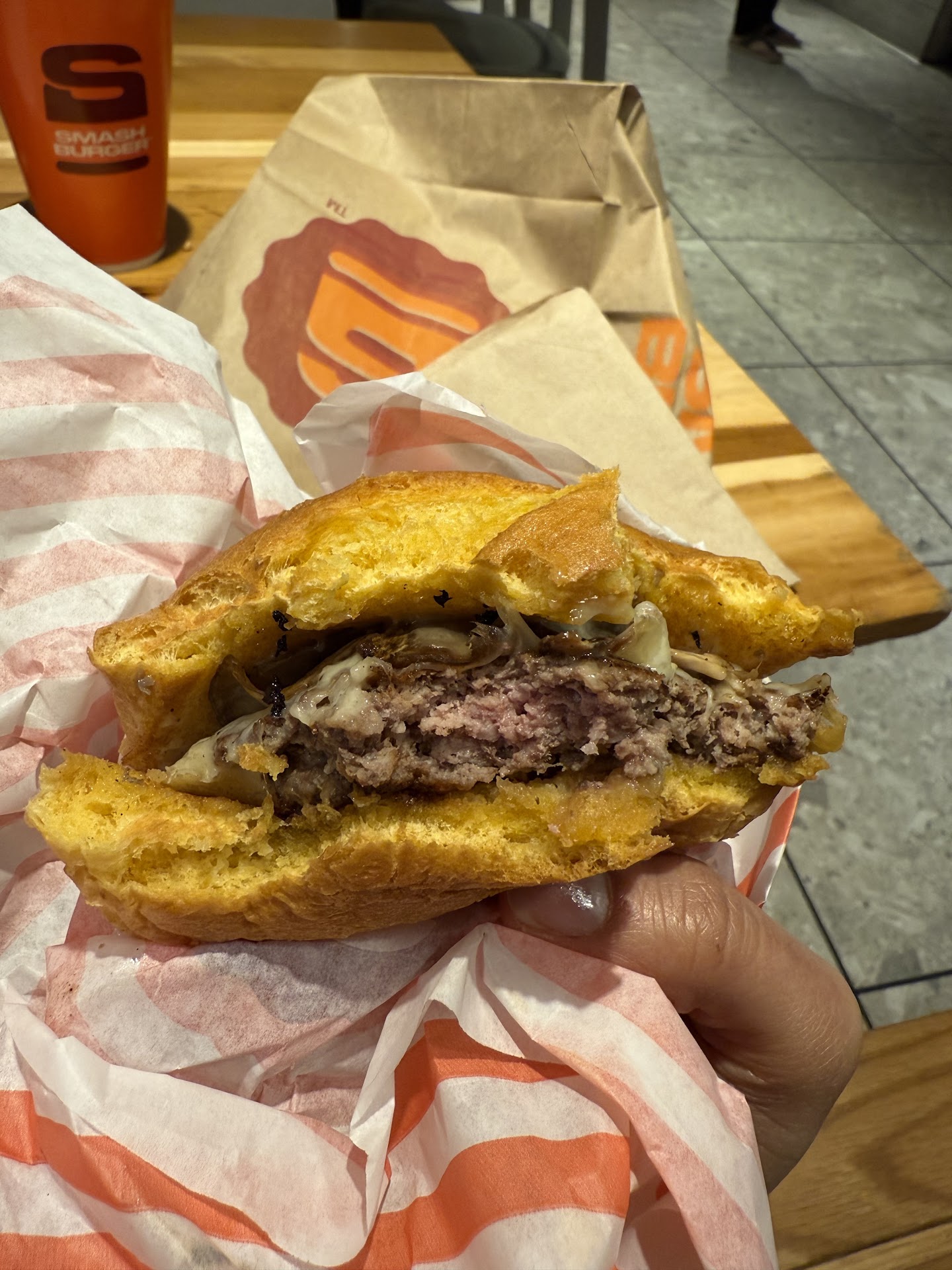 Read moreI would've gave this place an easy 5 stars across the board. Unfortunately it fell short in some parts! Don't get me wrong, if I had to choose Shake Shack or Five Guys....I would actually go for Smashburger! The flavor was awesome and the bun was like the icing on a good cake! It was just the service was really a let down. It wasn't too busy, but maybe I didn't realize they had a lot of online orders or something. It was my first time trying this place out and after I ordered it took almost 30-40 mins to get one double patty burger. I think it was close to closing time or something, but the cashier started cleaning up near us and ultimately made us feel like the table we was near couldn't be used and pushed them back as if we needed to move. Even after seeing us sit/stand there for that long...she didn't even acknowledge the fact we were waiting for a long time and offer assistance in getting a time stamp on when the order will be ready. So, the wife and I just waited patiently, but that experience would probably not make me want to come back and eat there again. Like I said the burger and wings was really good and the fries were "MID" as the new kids on the block will say. If they offered a Smashburger location on the East Coast I might give that location...