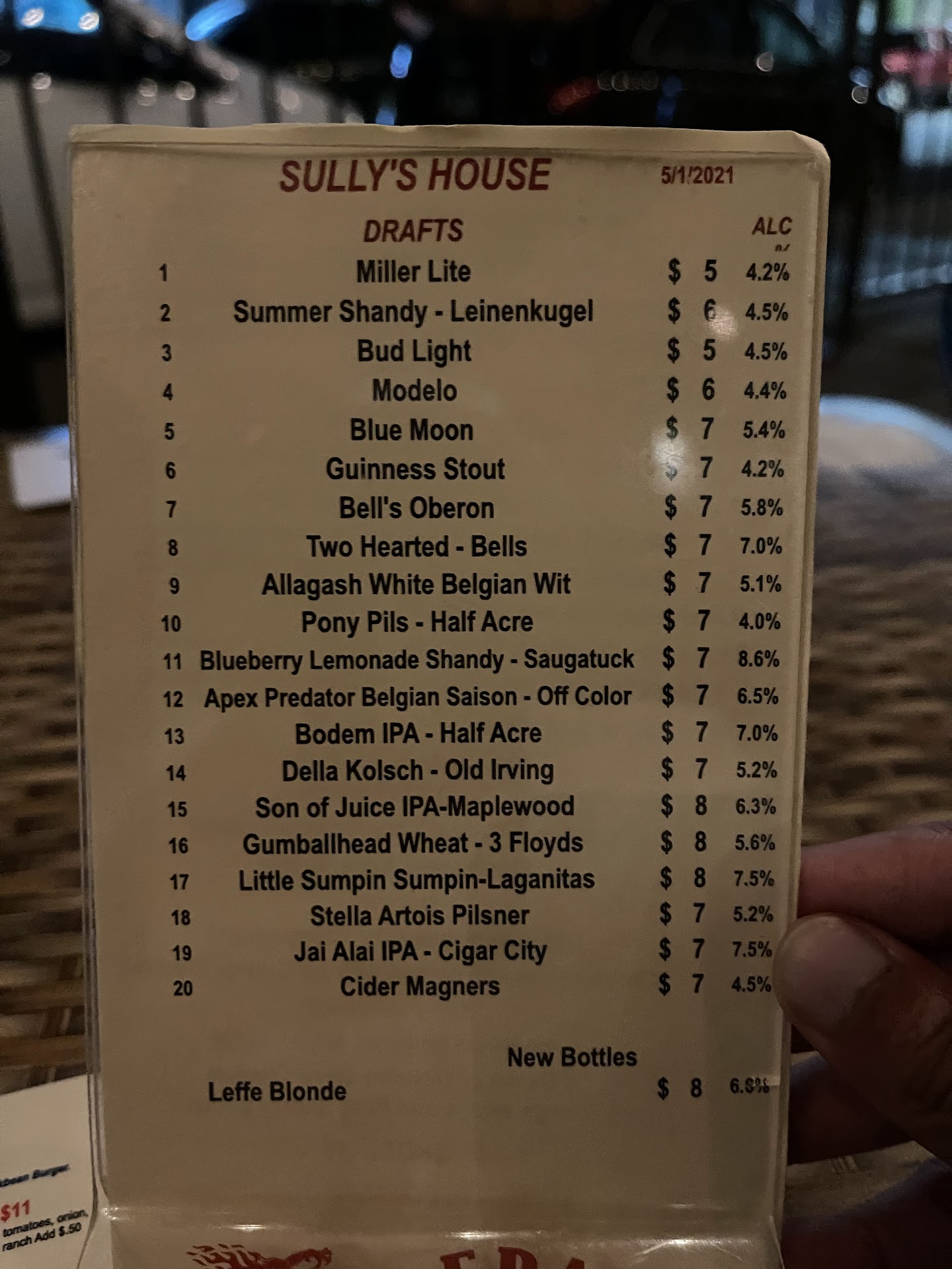 A number of drafts on tap, good selections and the waiter knew what to suggest. Also pretty good bourbon selection. We had 2 quesadillas which were one of the best we ever had. Thin, crusty on the outside and filled well. The red sauce was on the spicy side but combined with the sour cream, was perfect. When we mentioned this to the waiter, the owner came out and personally thanked us for visiting her...
