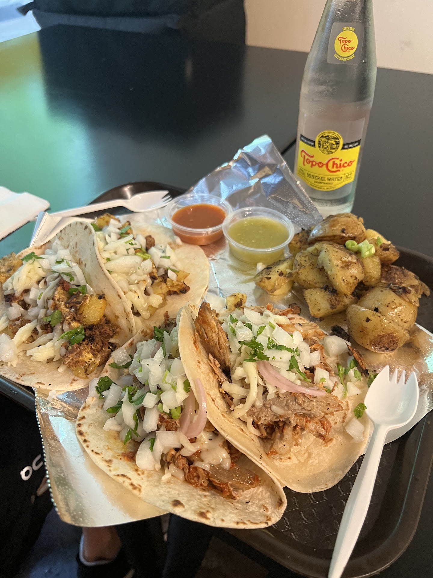 Grossly Overpriced for Poor Quality and Service. I ordered the Garlic Shrimp Taco meal with Potatoes and Elotes. The Shrimp was chewy like it had just been un-thawed. The potatoes and elotes were flavorless. Not to mention, the woman behind the counter continually bashing the young guy taking orders when she couldn't prepare the meal properly. The atmosphere was just completely unorganized and I would never return here or recommend this place to my coworkers for lunch. Find an AUTHENTIC...