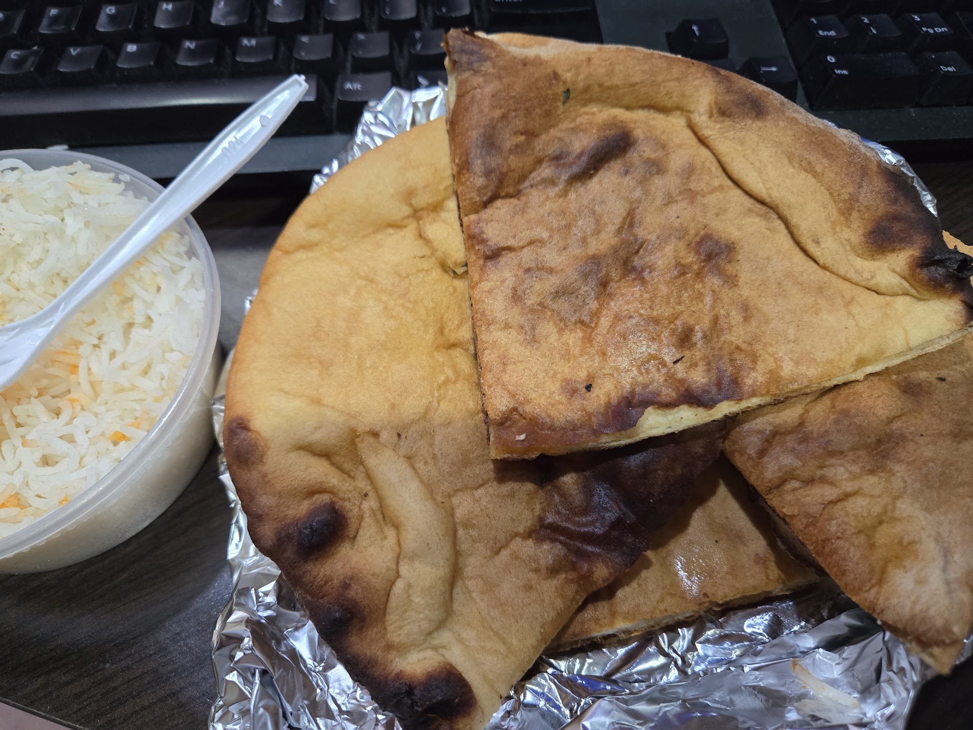 Portions are good for a single diner, without being over-abundant. The rice has just the slightest hint of vanilla to it that gives it a pleasant taste and complements most dishes nicely. As the man at the counter said, every region of India has its own variety of cuisine, and I would definitely say there is a robustness to the way that the earthiness comes out in the food. We tried Tikka Masala and vindaloo for our first excursion, and I was very pleasantly surprised by the level of heat/strength of spices at 'mild' levels for the Vindaloo. Their lamb is excellent quality. The taste of the red sauce has just the right level of kick with an earthy quality I struggle to place, but found delightful. Their vegetable samosas are exactly as hot and heavy as I know from other places, and a very hearty snack for an appetizer. They make excellent naan, but I particularly recommend the garlic naan.
