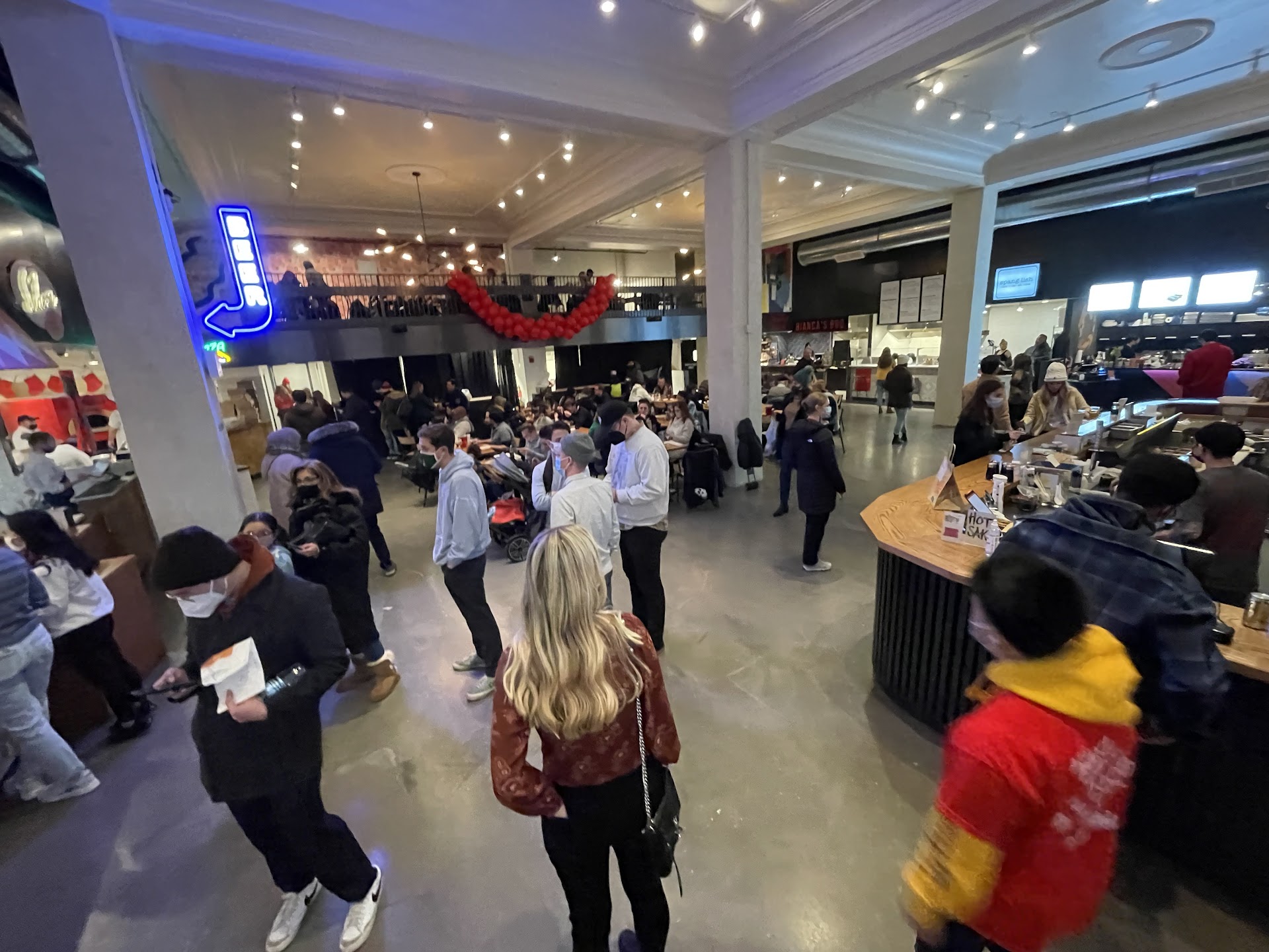 Facility is great! Very clean and inviting. The upper level seating area is very hot in the winter (or, at lease it was 12/11/2021). I had to take off all of my layers down to a t-shirt. Some of the vendors (Edzo’s Burger’s and Pita Yeero) were open but were choosing not to serve customers at 6:20 pm on a Saturday, which was frustrating! Budlong Chicken had run out of fries, Mac & Cheese, and everything for their salad, except carrots, by 6:30.