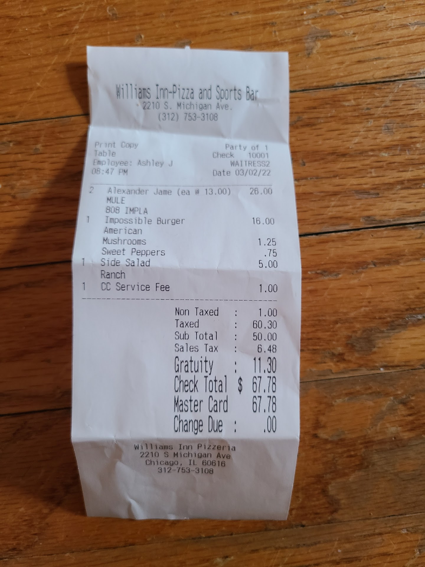 Absolutely awful experience. Attended an event at this venue, that was way overbooked by the host. Not the restaurants fault, but they were severely understaffed, and there was no plan apparently to deal with the crowd size. We were eventually seated, my girlfriend and I, and ordered our drinks and our food. This is where it went downhill. Our food came before our drinks. Waitress did say the bar was backed up, again, severely understaffed for the occasion. My girlfriend ordered a side salad, I had the Impossible Burger. Per the menu, the burger I ordered came topped with lettuce, tomato, and grilled onions. I added mushrooms and SWEET PEPPERS. Also came with fries and a small salad on the side. My burger had cheese on it. Nowhere on the menu does it state that it comes with cheese. I asked our server who decided to put cheese on my burger, she replied that the kitchen had asked her what kind of cheese, and she took it upon herself to tell them what kind to put on my burger. Unacceptable. She looked at me puzzled. I told her I could not eat the burger because of the cheese. She reluctantly took the plate back to the kitchen. Literally, she did not want to take the plate back. She came back a few minutes later and said my burger should be out in 5 mins. Great. By this time I drinks had come. A guy emerges not even a minute later with my burger. He says "enjoy." I look at the burger, and I can see cheese on the side of the patty. I lifted the bun, and there was remnants of cheese on the patty, and mixed in with the toppings. They simply removed the toppings, scraped the cheese off mostly, and put the same toppings back on which cheese had melted to. Unacceptable. I told the server I didn't want the burger. With an attitude she grabbed my plate and stormed off. We sat for some time enjoying our drinks and I picked at my girlfriends salad, expecting that's all I'd be eating at this establishment. Our server then returns to our table with burger!? I'd told her I didn't want it, yet she decided to bring another burger. Ok. I'm hungry. I'm tired of fighting over this burger, I'll just eat it. These people are special. I lift the bun to make sure there is no cheese. No cheese! INSTEAD, someone decides to put MUSTARD AND KETCHUP on my burger! Can't make this stuff up. Not only that, there ate green peppers on my burger, not sweet. There are also no grilled onions on this one. So they've now added toppings, again, that are not on the menu, and omitted one. Not only that, I no longer have a salad on this plate. Just a mound of shredded lettuce, and one slice of tomato! Both of which are for the burger. At this point I'm laughing. But I'm irritated, also. I eat the burger. It easy good, at all. We finish our food and try to enjoy the event at the restaurant, which is another story. We ask for our check, server just takes my card. That's odd, but ok. We are just trying to leave. Get the receipt to sign after my card was run, and it is way higher than I anticipated. Remember, we had 2 alcoholic beverages, an impossible burger, and a side salad. My bill was $67.78. For what? We didn't eat anything! I ask our Server Witta Attitude if I can see the breakdown of the charges, which I should have been given anyway. It takes 5 minutes to get it. Once received, we notice we were hit with $11.30 gratuity... for 2 people? Cmon now, that's absurd. Plus the service was subpar at best. Explains why she didn't give us an itemized receipt before charging my card.