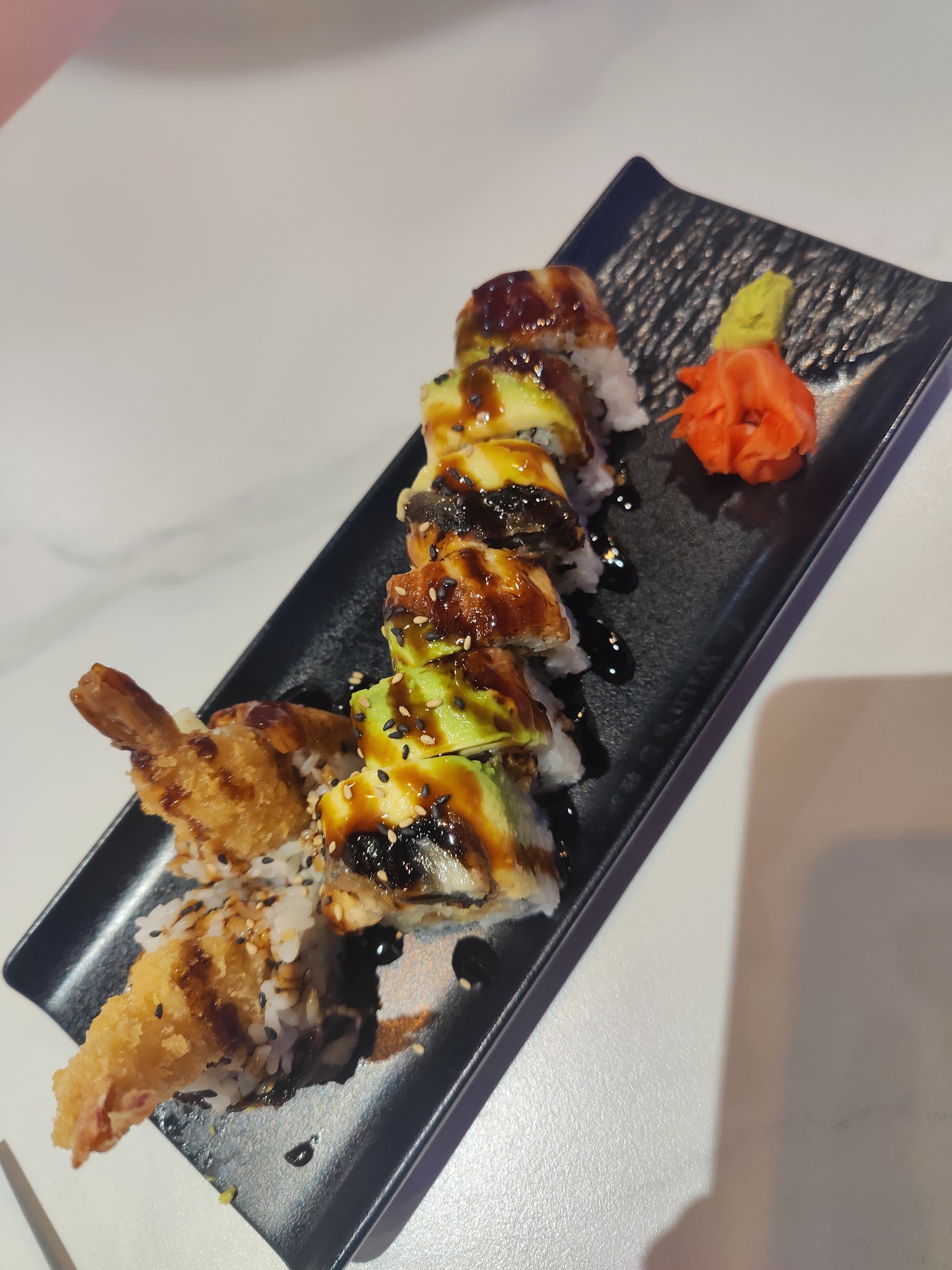 We only tried one roll of sushi the dragon roll and it was good but nothing out of the ordinary. Eight pieces for $13. We also tried their miso soup appetizer for $2.99 it's pretty good and would order again. I'm interested in trying more of their sushi rolls so I'll definitely be coming back.
