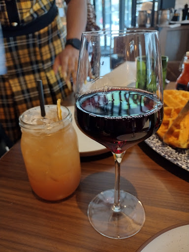 For the entrées, we went with the Chicken & Waffles—Chilled Spiced Watermelon, Sharp Cheddar Waffle, Honey Hot Sauce, and Bourbon Maple Syrup. This was my first time ever having chicken and waffles, and I couldn’t have asked for a better introduction! The chicken was perfectly crispy, the waffles were just the right amount of sharpness from the cheddar, and the grilled watermelon—oh my goodness, it added an amazing touch of freshness and sweetness that tied the whole dish together. A delightful contrast to the savory richness of the chicken. A must-try, hands down!