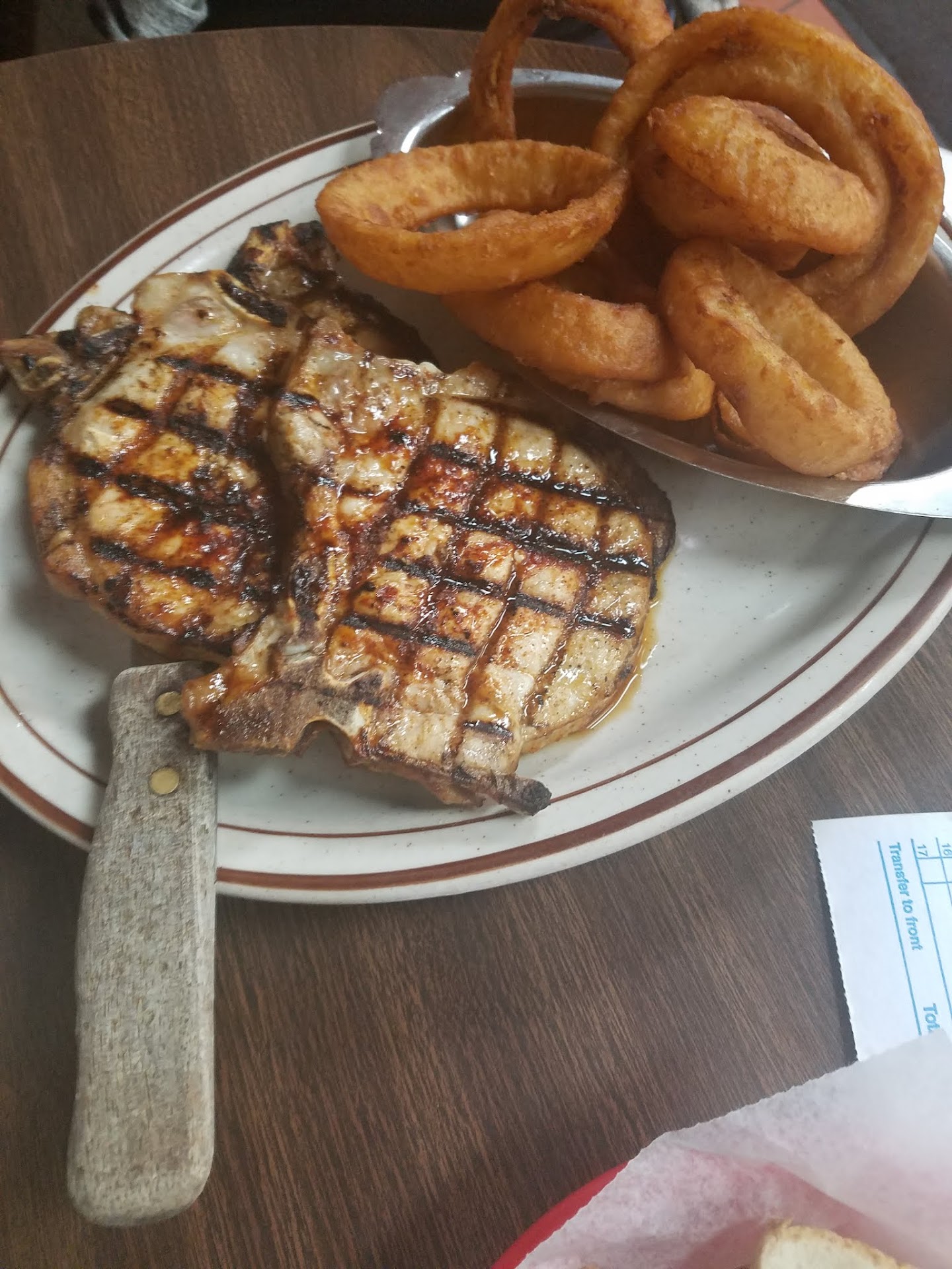 Read moreIn all fairness, I didn't eat ribs so they may be great. My son ordered a pork chop dinner & he said it was really really good. The people are super friendly. They had a decent salad bar although it's a little hard to reach into & the tongs could be better but the lettuce was fresh & the dressing was good & they had a good variety of different items on there. I ordered a kids chicken meal, my husband & I both ordered the 14oz steak with potato. It took forever to get our food but when we did, they brought my steak 1st (only my steak), a few minutes later they brought my husband's steak (only his steak), a few minutes after that they brought my sons pork chop dinner & my baked potato & by this time I have 2 grand babies crying for food & theirs isn't there yet but a few minutes later they bring my husband's French fries & finally the kids chicken. By the time I got the kids food & got it cut up for them, my food was cold but their chicken was dry & had some kind of season that was kind of spicy & they wouldn't eat it (1 & 2 yr olds). My steak was cooked well & was juicy but like I said was cold by the time I got to eat because it was the first thing on the table & last thing to get to get eaten & almost 1/2 the steak was fat & gristle & not a lot of flavor. I realize it was only $16.95 but even for that it could have at least been brought out AFTER the kids meal so I could have at least eaten it...
