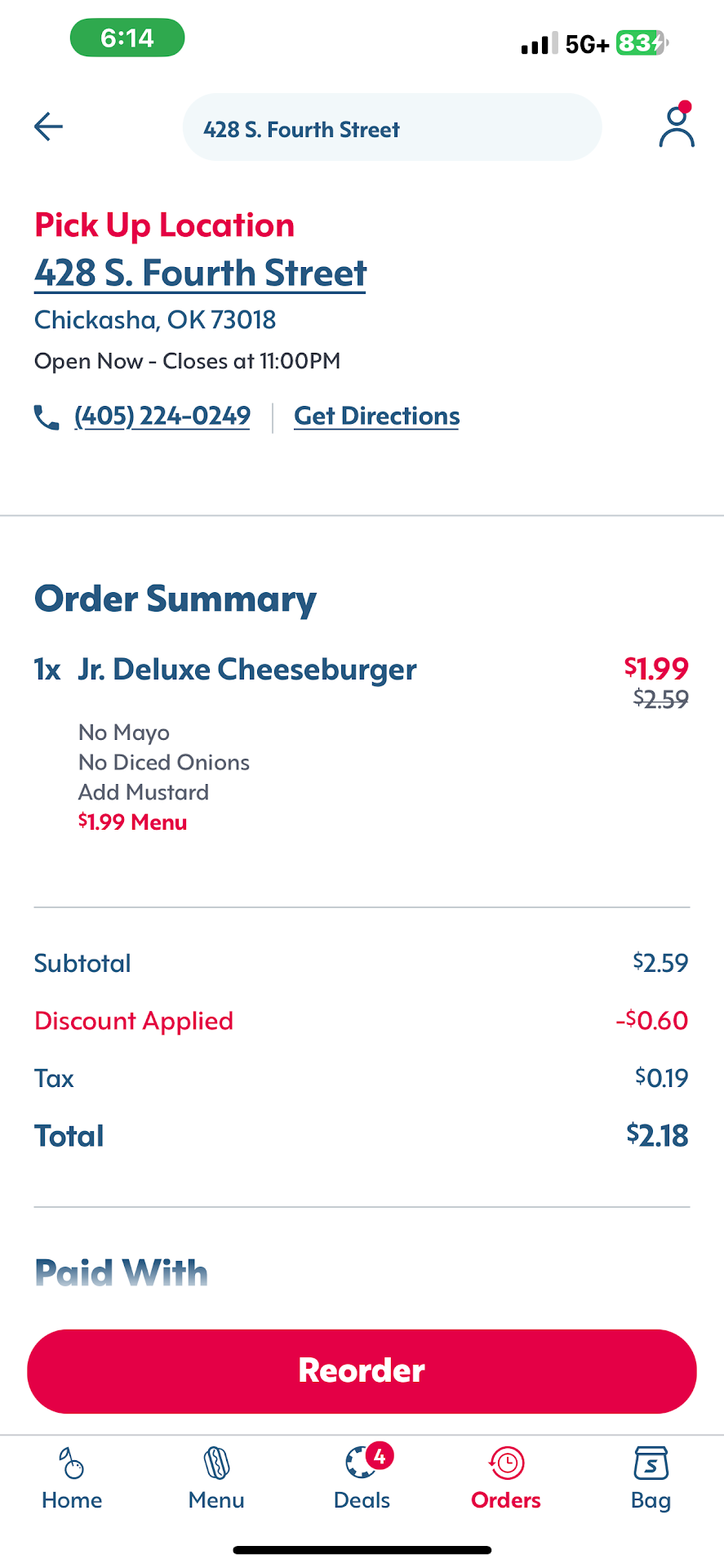 Read moreEvery time I go get a jr deluxe burger I ask for no onions no mayo add mustard. But every time I always end up with no ketchup on it which the burger comes with it, and then has onions. I asked for ketchup packets and waited 3 minutes till I pressed the button again and said I’ve been waiting. They have no respect and will mess up your order almost every time. I stopped getting the condiments for my chili cheese dog because they would never put it on there and I would always have to ask for packets of them. I have worked in this type of industry before I know how it is, but there should not be this much of mess ups if your training your team right and them not eating the ice straight from the thing with their bare hands, which I seen first hand since I did work at this one before. Shitty environment and mangers/employees, added photos of the proof of my order and that it does come with ketchup. I’m not posting this just to post it. I’m tired of getting my shit messed up and something needs to be done. Keeps happening I will go straight to corporate about it. And when my order gets messed up maybe yall should have good service other then yelling and getting an attitude with a customer over their order when they know how they ordered it and knows what comes...