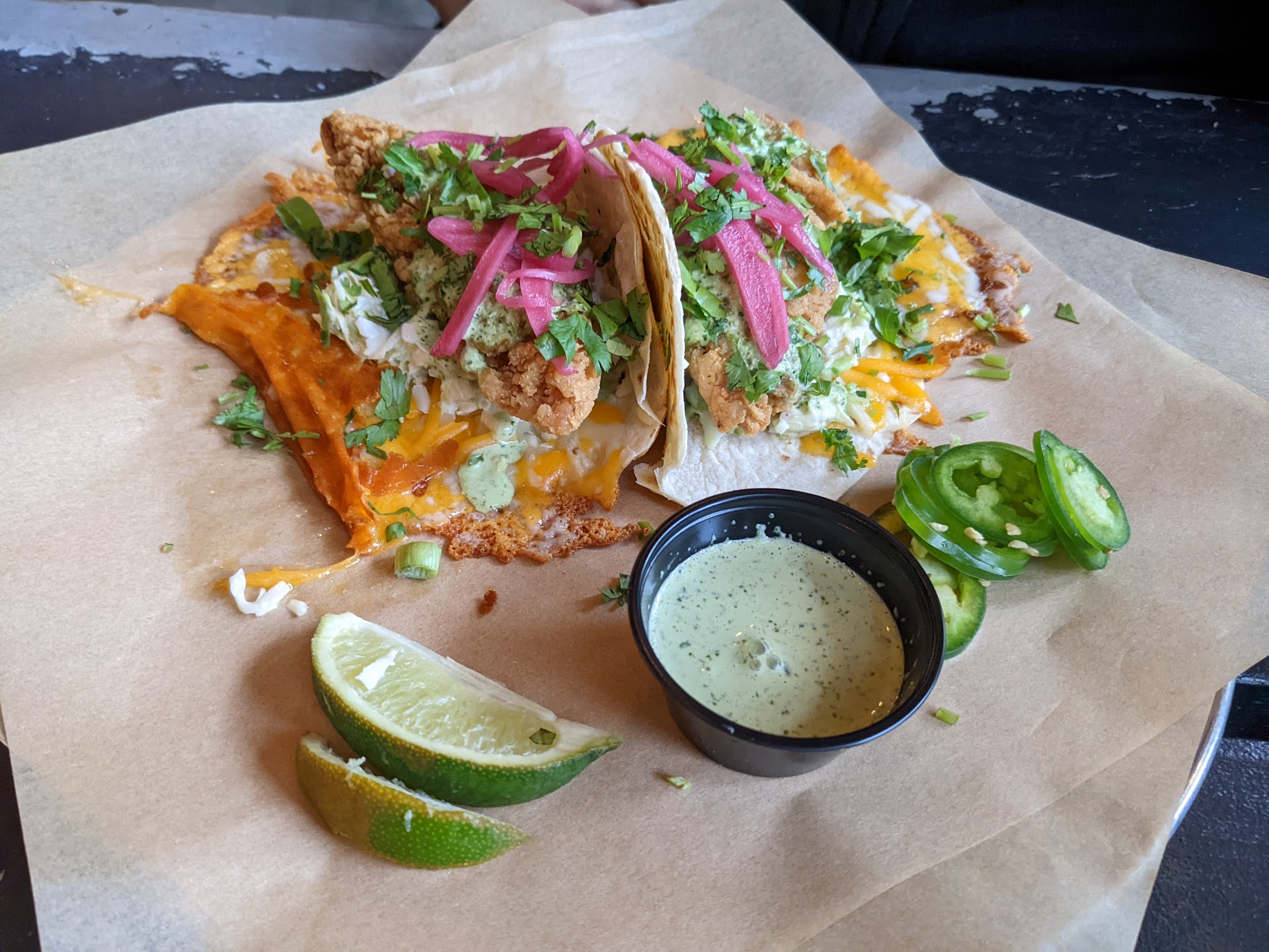 Read morePlace has a nice back patio with a bar, pretty cool hangout. Cocktail menu is nice. However, besides for the tasty french fries, we must have ordered the wrong things off of the menu. Chorizo con Queso is a beloved dish in Mexico - chunks of chorizo sausage with Oaxaca cheese melted on a clay dish that you eat with flour tortillas and hot sauce. You are not going to get that here. It's a cheese dip, with microscopic specks of chorizo and poblano chile, which impart no flavor to the the grainy textured dip. Then we ordered the Cubano. The cubano is a hearty Mexican torta with pork and ham, lettuce and tomato and onion, pickled jalapeños and a tiny bit of mayonnaise on a torta bread roll. This was a grease bomb of mayonnaise and maybe even butter, I don't know, but it made me want to gag. It had some pickles on it, but it was dying for pickled jalapeños. Really gross amount of mayonnaise with pork, and that's about it. Nasty. Just because people are drinking, doesn't mean they want to drink giant globs of tasteless fat in their food. Hopefully, the other stuff on the...