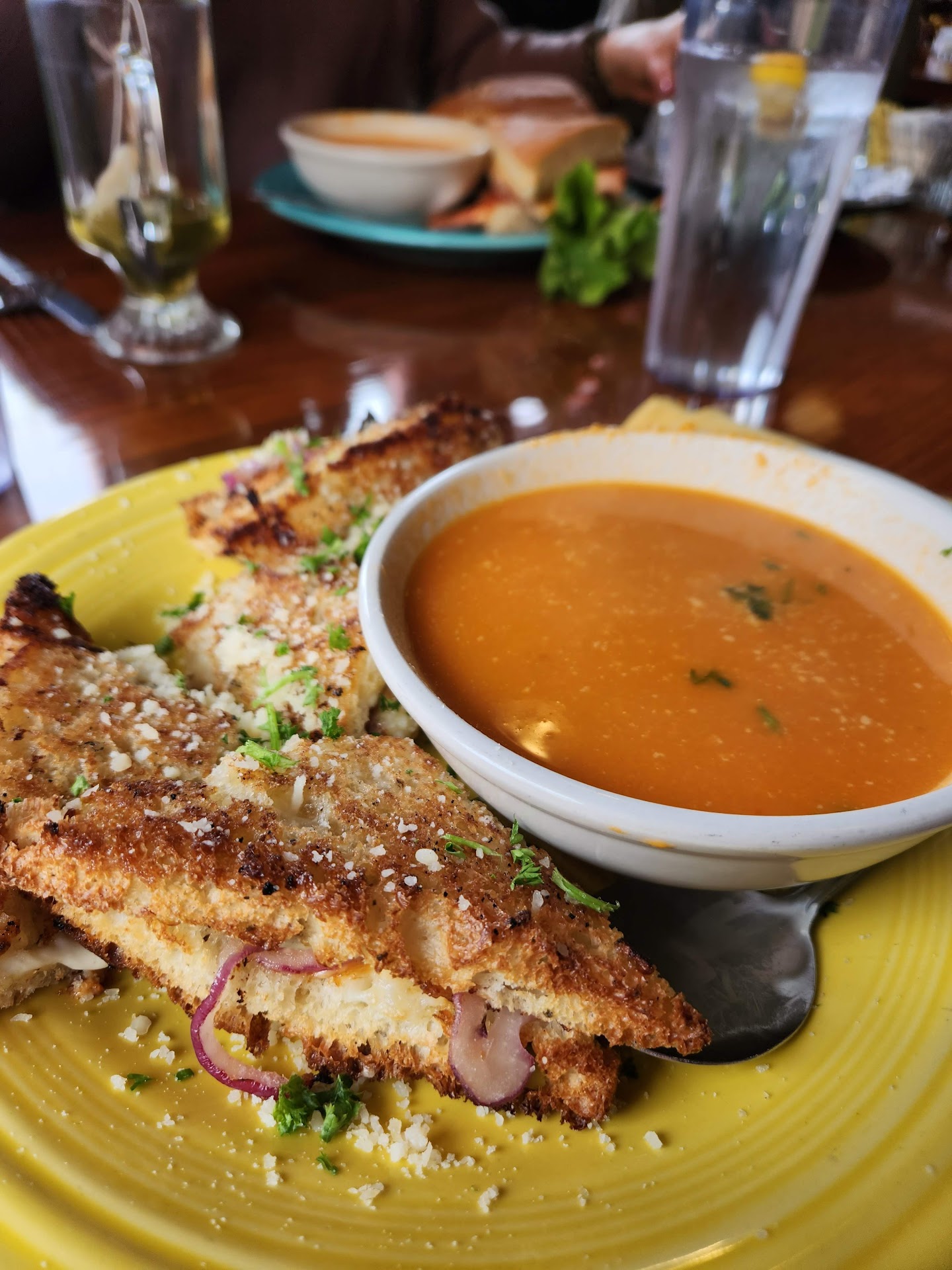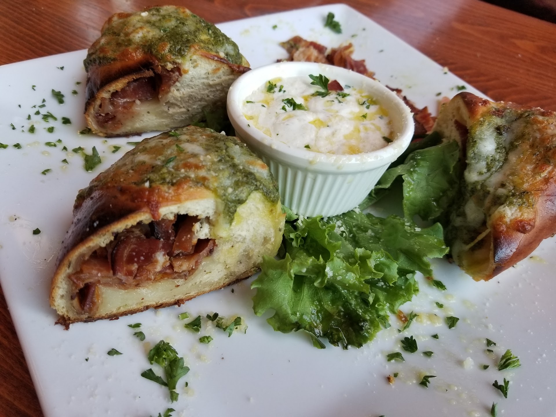 Over priced. Hi Scott, I'm responding to your request. My wife and I entered your establishment and got a glimpse of the slate board listing specials. The greeter met us immediately and seated us in a back corner apart from the main restaurant, a location where there is a big chunk of floor damage. We looked at the menus and the server arrived. We asked what the specials were as we didn't get to fully read them upon our entry. She told us what they were and we both decided on the specials; a tri tip, sandwich and a bruschetta chicken sandwich. The server asked us which type of salad we preferred so we told her. There was never a mention that the salads were separately priced or that the type of salad would cost extra. We both ordered Iced teas. We expected our bill to be around $28. Once we received our bill we were surprised to find that the salads were at an extra cost and that the medium sized, never refilled, teas were $3.25 each. The total bill was $38.50 not including the tip. I can say that the proportion size of the sandwiches were quit acceptable, being good sized. However, I was not impressed with the small amount of tri tip steak that was provided. I estimate maybe around 2 to 2.5 ounces n total. The illusion of the large sandwiches resulted over the size...