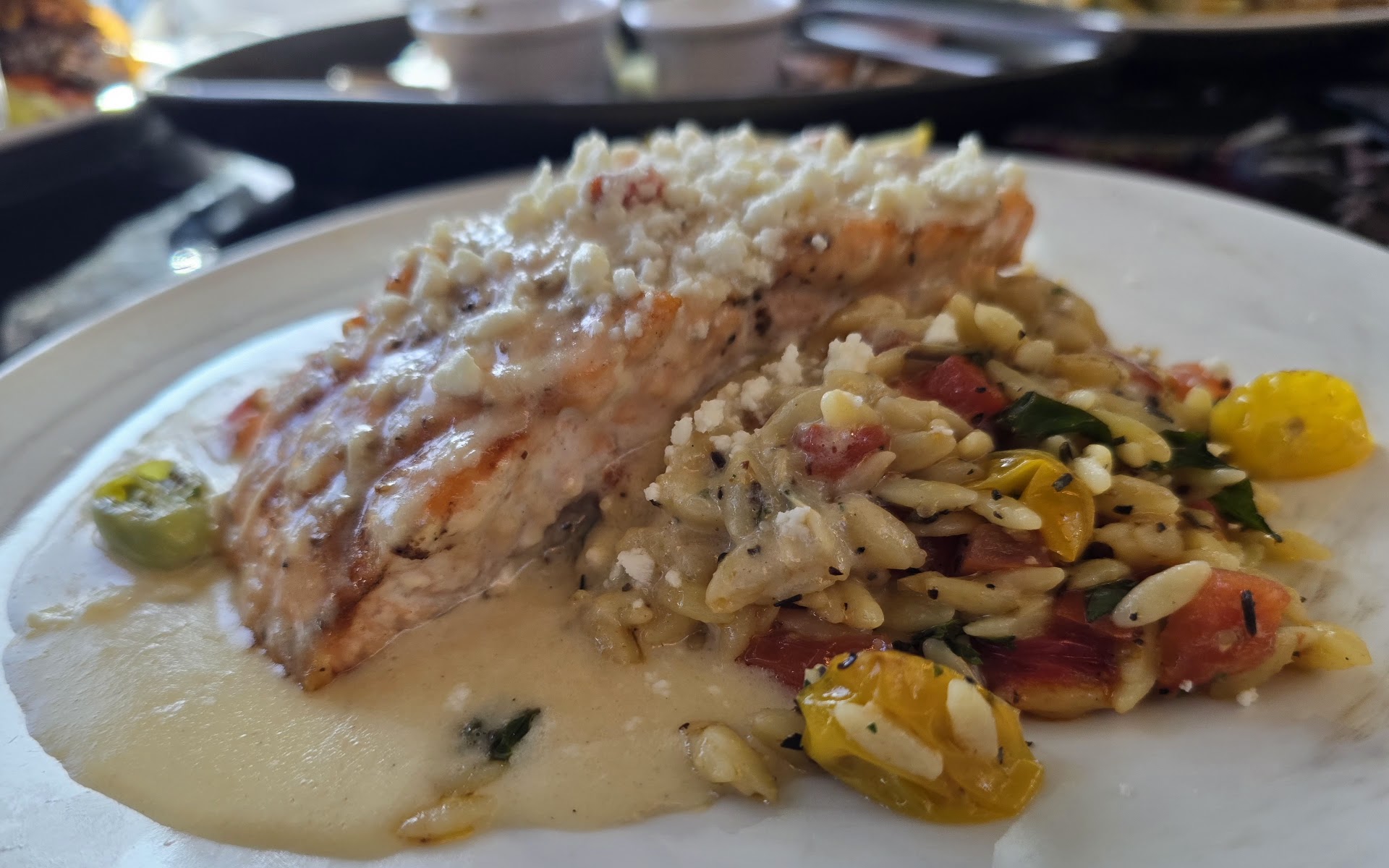 Read moreFun, new restaurant with indoor and outdoor seating. Great service. Clean bathroom with dim lighting. The appetizers were amazing!!!!!!! The pickled ginger with the ahi app was probably the most amazing I've ever tasted (I've tried a billion) and really really worked wonderfully in the dish. The Ahi and avocado on toast was so delicious, creamy and wonderfully seasoned. The charcuterie board was lovely and plentifully for the three of us to get a taste of everything without filing up before dinner. The grilled salmon was cooked to perfection although the orzo was a bit too acidic for me, which is a shocker since I usually want more. There was a lot of fats in the orzo that I think they were trying to cut through, which also made it kinda heavy. My companion raved about the burger and I stole a garlic fry and they were nice, especially with the house made ranch. The seared Ahi entree was lovely as well. The ahi was fresh, tender and not over seared. The rice cake was flavorful and rich with umami and...