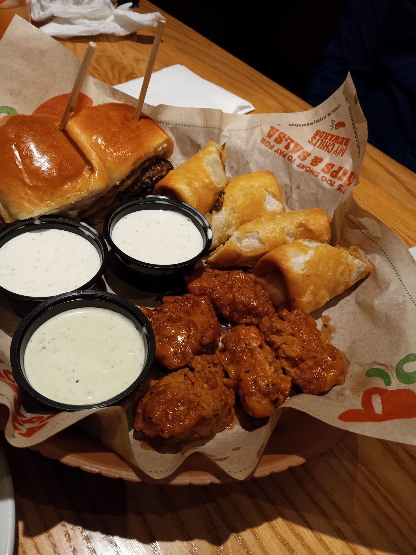 Read moreFirst off if I was able to give 0 stars I would, I went there last night with my mom and boyfriend, and everything was fine until one of the workers that was off duty was drinking and there with some of her pals, the bartender and even the MANAGER kept giving her drink after drink, she wasn't even able to walk correctly or talk right. We just minded our own business and contiuned eating our meals. After before we left I went to use the restroom and I walked in I slipped in the workers throw up! Which she was in there with the manager and as I asked "is that throw up? Did she puke!" The manager replied with "oh uhm idk I just came in here and it was there already" I continued to use the restroom and then smelt the horrible vomit on my sandal. I then came out the stall and asked again" was it throw up? " and they replied with "oh we're fine". The next day I called early in the morning to ask for the owner which a waitress told me her name was 'Diana' the manager answered the phone and asked why I wanted to speak with the owner and I said "personal issue" she then replied with "she's on vacation " and hung up on me. I already contacted headquarters and I will not go back to that chilis with...