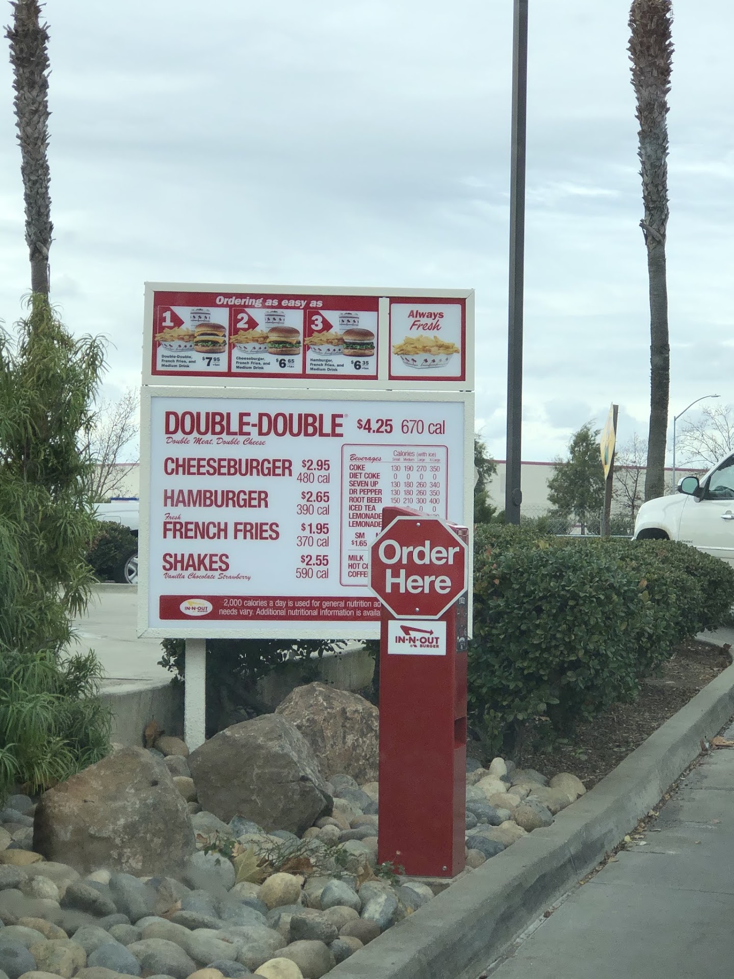 As this was my very very very very first time I ate at an In-N-Out, I was pleasantly surprised at the no nonsense straight forward basic menu. Burger... Cheeseburger... Sprite... Dr. Pepper... thank you. Too tired to second guess do I want extreme fajita poppers or double grande molten cheesy baco-bit onion rings with my western guacamole zesty Colorado ranch burger. Medium fries please.