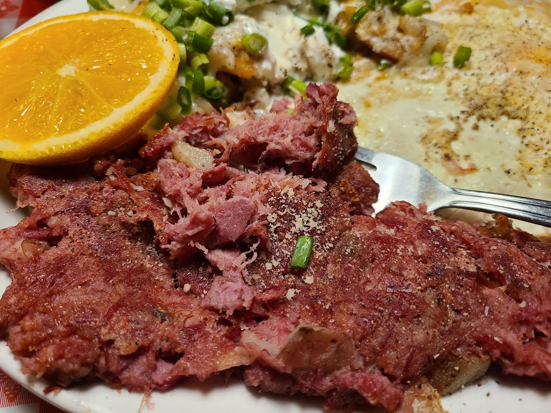 Tonight we were told that we can only order toppings that are listed under the possible omelette toppings on the menu. The shredded beef is not an option even though you can get it on a beef sandwich.
