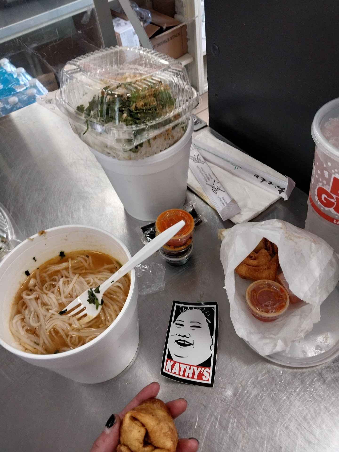 Read moreFelt like trying a new Pho place and decided Kathy's was the one! They definitely didn't disappoint. I love that they have the garlic inside their pho which was new to me, it added a nice flavor. Their meat was excellent quality as well. Wasn't used to the way they made the crab ragoons but it added to the fun of trying a new place. Plus they give you a fun sticker and if you order take out they put your noodles in a plastic tupperware so its easier to put your noodles in the pho! Was a...