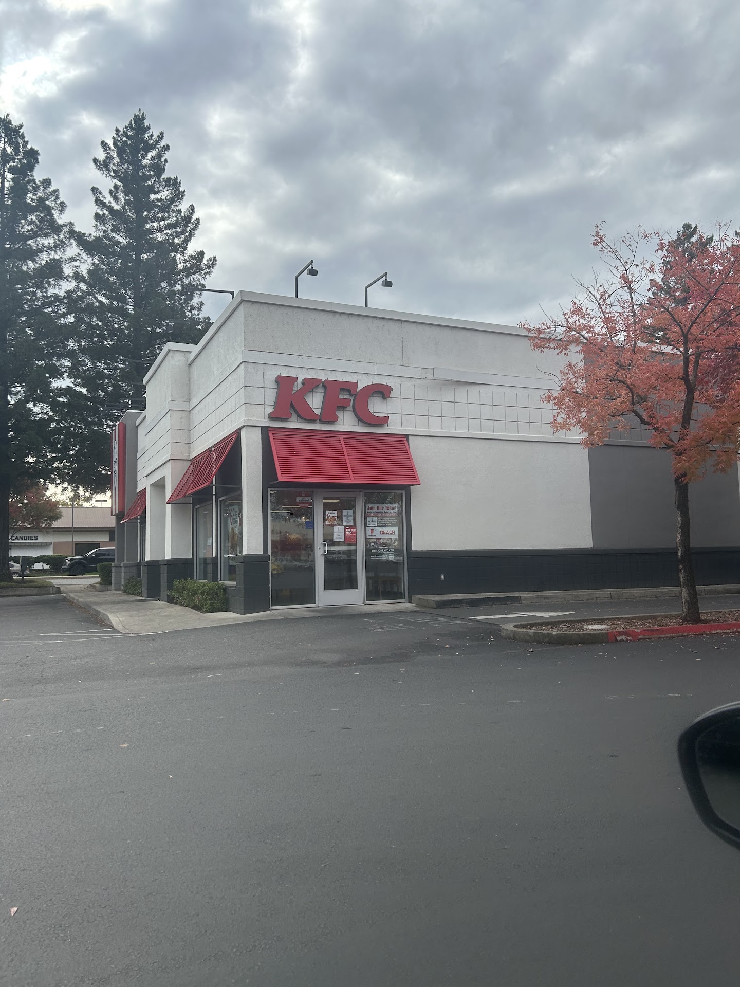 KFC nearest shopping mall in Chico California this is my first time eating there 11 Butte County for more than 10 years are used to from the Bay Area eat out of other KFC's the chicken was great by the way KFC has the best coleslaw that I ever taste of my life but ten over ten years ago I want to Oroville California and the pieces were so small I just couldn't eat at KFC anymore and KFC sold out on the corner of Oroville Lincoln in Oroville California what time Popeye's moved in I'm Popeyes Chicken pieces we're so small that I swear to you I'm eating skin and bones so after few times I quit KFC and Popeyes Boss 3 weeks ago since I'm doing ladies reviews to KFC and Chico near the mall reminder me back when I was in the Bay Area 20-30 years ago there were you know real size chicken lots of meat on it the servings were more than two tablespoons and I mean mashed potatoes gravy you know coleslaw. Whole works and for three-piece meal you know just like in the Bay Area I mean well I'm glad KFC is back I wish I would have went to KFC and Chico long time ago I gave up on KFC but thank U Chico KFC you need a five-star for that oh workers we're kind of Lane I mean lame they seem to be young and on the tentative I don't know if they're overworked nowadays be in the student but I was once the student myself and I don't know maybe I'm wrong or generation change but Jesus kind of seems slow but hey anyway I still have to give you a 5-star you guys did meet all my needs and did comprehend what I want to labios me just grew out anyway...