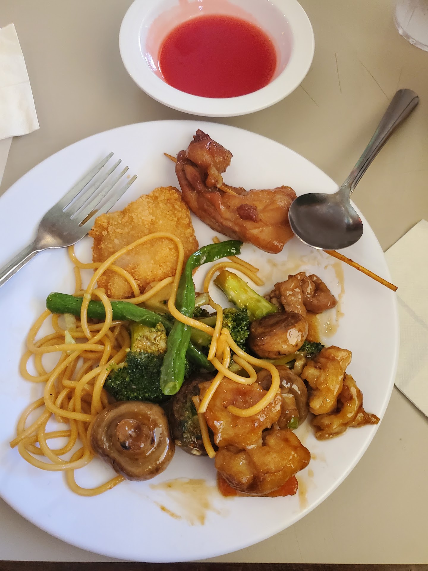 Love Kwando's for lunch. So let's start with the cons as usual: There is no alcohol served. I'm not sure what the reason for this is but I assume the liquor license is a bit too expensive for the generally good prices. Fried rather than steamed potstickers. This is likely to save time and because steamed potstickers would dry out on the steam table too quickly. The time before last I visited about an hour before closing and many items were already getting stale and others had been removed. I get that it's a buffet and this is necessary to avoid food waste, but it wasn't wonderful. Still, minor issue and an understandable one. Lackluster climate control. Again, this is to fake money and keep prices down but it made eating at 1PM while it was 105 outside a bit less enjoyable.