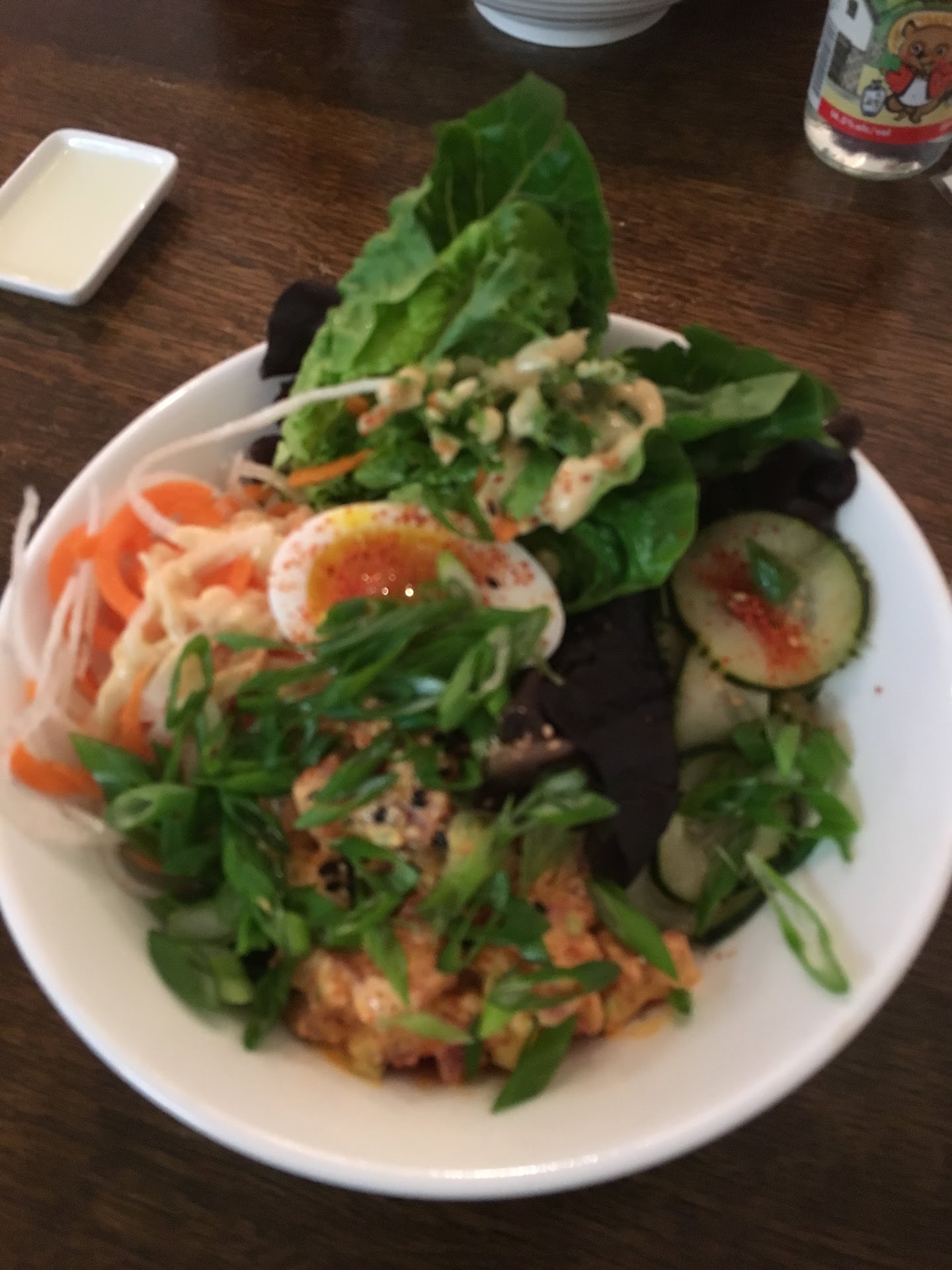 But, I've done the make your own ramen now too, and I didn't realize hot sauces were .50 add ins, so the miso broths tame umami blandness was saved only by getting hoisin sauce pork belly and pickled mushroom (I do love the pickled shrooms) and soy sauce that I asked for. There are pho places in town that do better portions with sauces at the table to use to your hearts content for less money. Also, got bao today without furikake (wasn't asked but assumed it was default, but perhaps too many people are frightened by flavor?) And it was fine but not making me want to get it again. With the number of poke places in town now, I'm honestly just coming back for the pickled mushrooms.