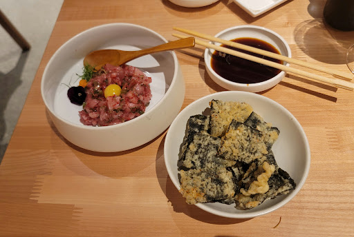 Ā Ā Ā Read moreThis place lives up to all the hype and is setting the bar high for other restaurants trying to come onto the scene! The ambiance was fabulous; modern, chill vibe with a slight feel of city-life sprinkled here and there but not too much to make it feel uncomfortable for our small town. Every single staff member was on point from when we walked in and greeted by the friendly hostess until we walked out and one of the bussers opened the door for us to leave. Beautiful bar and fun layout that makes every table feel like it belongs. They recommended a red wine that was delicious and didn't try to push the most expensive glass on us. And now the main part, the food!! Oh my yumminess!!! I wish we would have taken pictures but we were so in awe and living in the moment that we forgot and just enjoyed! Every dish that came out was a unique piece or art and it continued on with the taste!! My husband loves spice and thoroughly enjoyed the muscles and I think some sort of Hamachi carpaccio. I had the K2 roll which was full of flavor and definitely filling! It tasted like real crab and not imitation which you dont easily find. I felt that the price was fair for the quality of food and overall dining experience. You definitely need to try it, especially if you enjoy Japanese cuisine. I forgot to look at the menu to see what they had besides Japanese or if they had kid options so that gives us a good excuse to go back again sooner than later. Thank you for bringing something so yummy and...