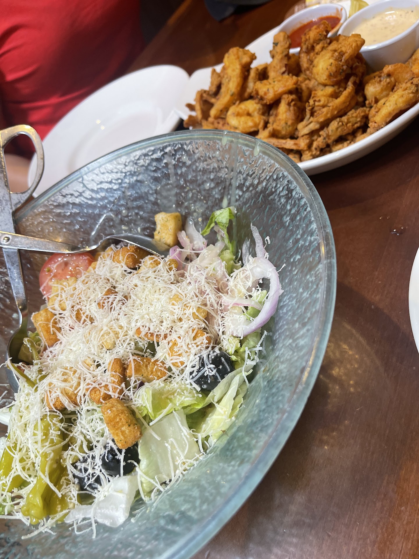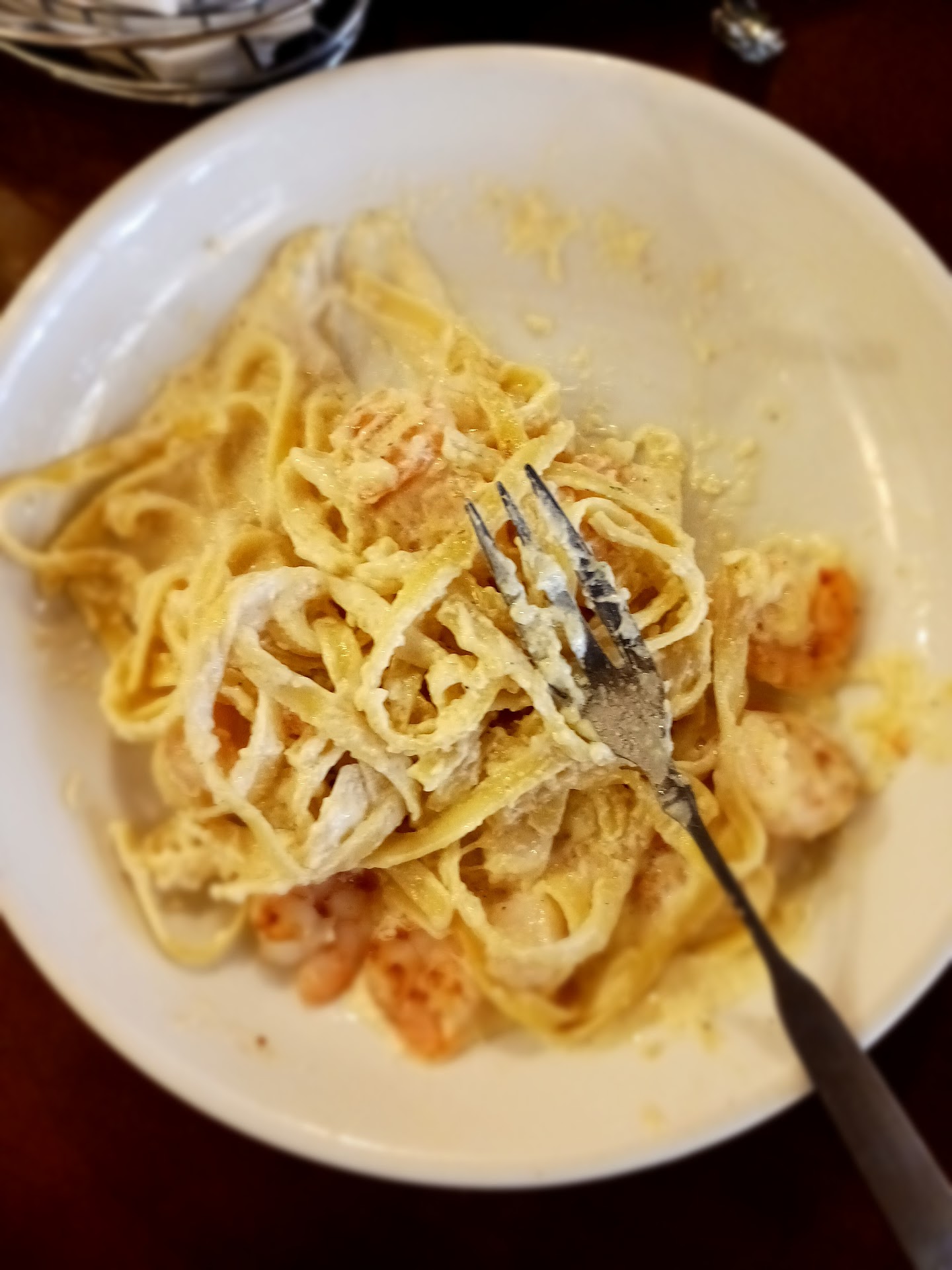 Read moreThe greeter was very nice and extremely helpful. The waiter was nice but it took awhile to bring things I asked for/needed and there were not very busy at all so not sure why the long waits for each thing. I was excited because I hadn't been able to come eat for a while because I am not local and we dont have an Olive Garden where I live. They were doing the never-ending pasta bowl, yum!! They also offer an option to take a bowl home for $6.00 with the purchase of any entrée so I took advantage of this option as well. The salad was great as usual. I didnt eat the breadsticks at the time saving them for my pasta so I could dip in my alfredo sauce which ultimately did not happen as my pasta had very little sauce and I had a lot of "dry" noodles. This was very disappointing but honestly the worst was when I started eating my pasta. I ordered the fettuccine alfredo and also added the never-ending sliced crispy chicken to my pasta. There was VERY little chicken on top and as I was eating, I couldn't figured out why my pasta tasted "off" and then I realized that it actually tasted more like macaroni and cheese flavor as opposed to alfredo. This was a day I decided to give myself a treat, sadly I left there very disappointed and felt like I paid way too much for what tasted like dry macaroni and cheese with a few slices of chicken. I really hope this was just an "off day" and that there food is in general, still good. This day,...