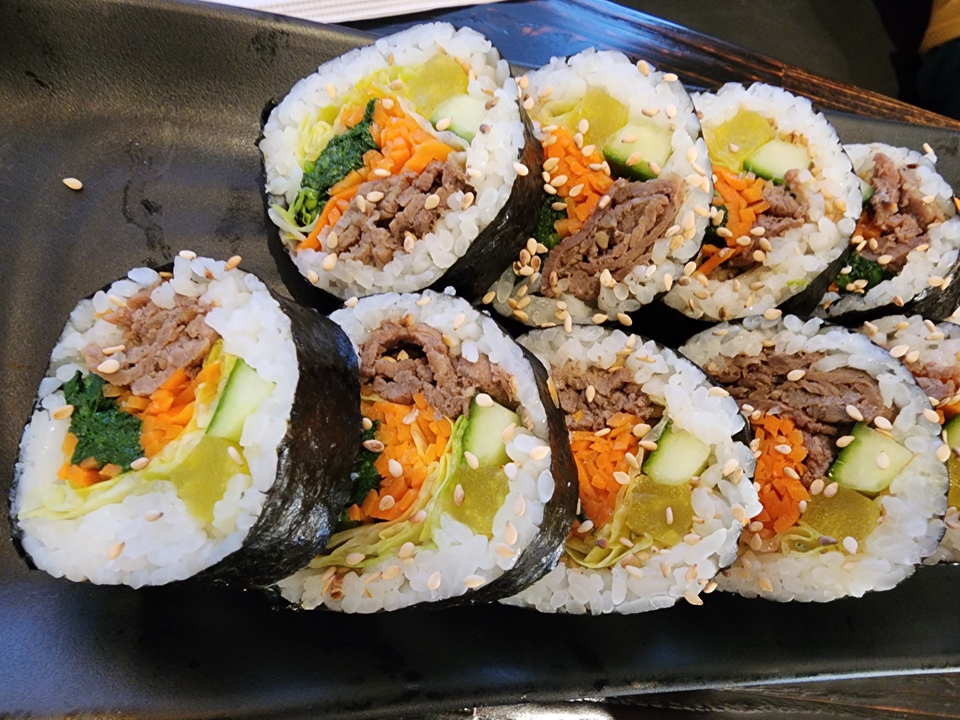 Ā Ā Ā Read moreTruly a five star food experience. The woman at the counter was very helpful explaining all the dishes, but what really made this experience great was the food! We ordered a beef bibimbap which came with a friend egg and colorful vegetables on a white rice bed. Seasoning and textures merged together beautifully in a somewhat bittersweet fashion as mixing together the ingredients absolved the once visually tantalizing presentation of the bowl. We also received a chicken kimbap roll. I had yet to experience a roll of sorts containing non-marine, "land meat" which actually faired better than expected. The roll slices had a freshness to it and a memorable color palette. The roll itself was a little on the bland side but paired with the kimchi which we also ordered amped it up a notch. The kimchi, to my palette, did not seem actually "fermented" but the flavors were so on point it didn't really matter. Oh and the crunch šš¤¤...