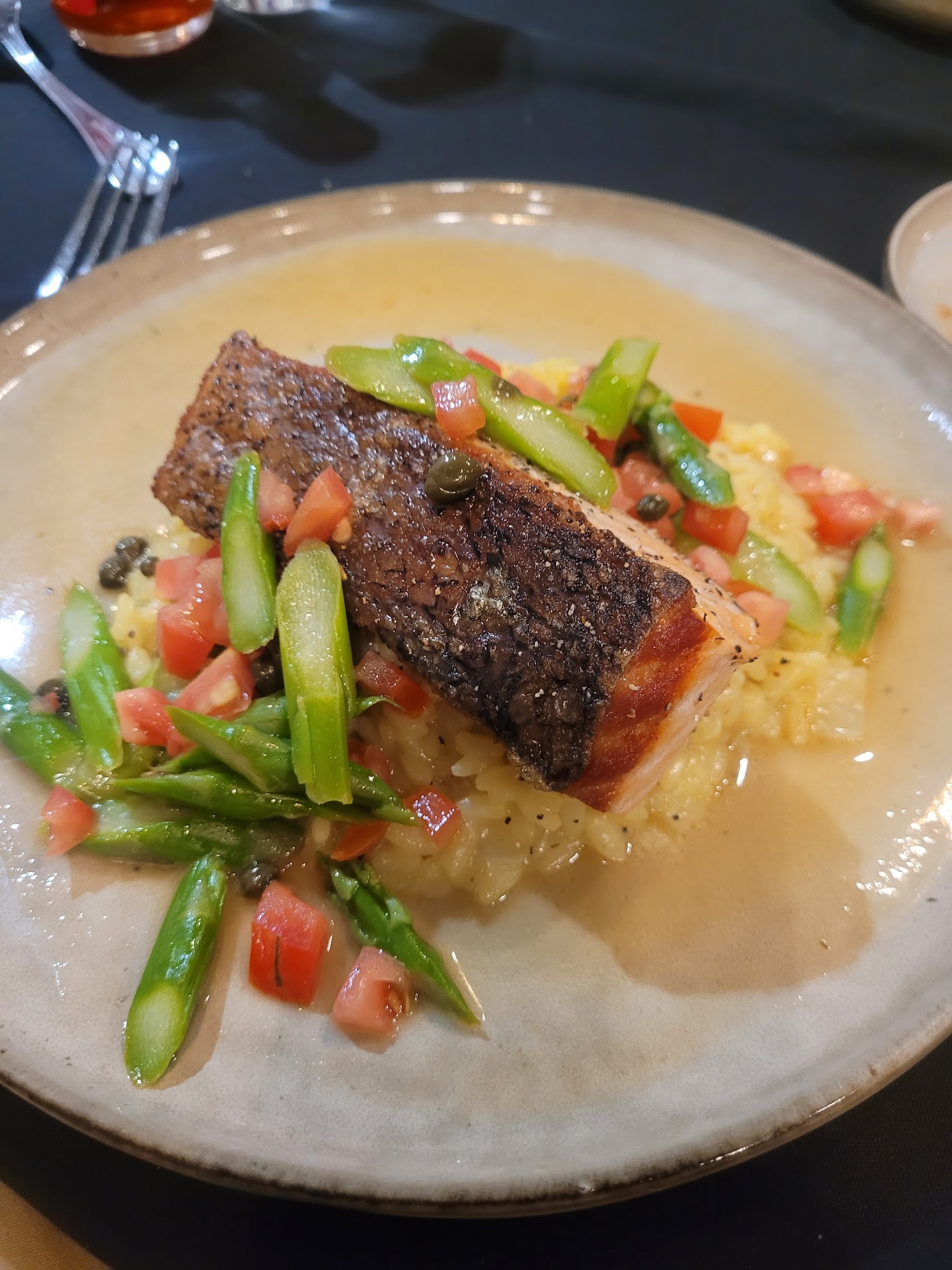 The atmosphere was not too favorable. The restaurant was way too loud. We were having to yell at each other to have a conversation with each other. I could never bring a sensory-sensitive person to this establishment and sit inside. There is outdoor seating, which may be ideal, and I will reserve a table there to see how it goes. The restroom was clean and the establishment was well-decorated, well-lit, and very clean. Minus the noise, Rhone Italian Restaurant is as perfect as it can be and not be a dream. I will recommend it to everyone and update my review after sitting outside and experiencing the atmosphere. Well done,...