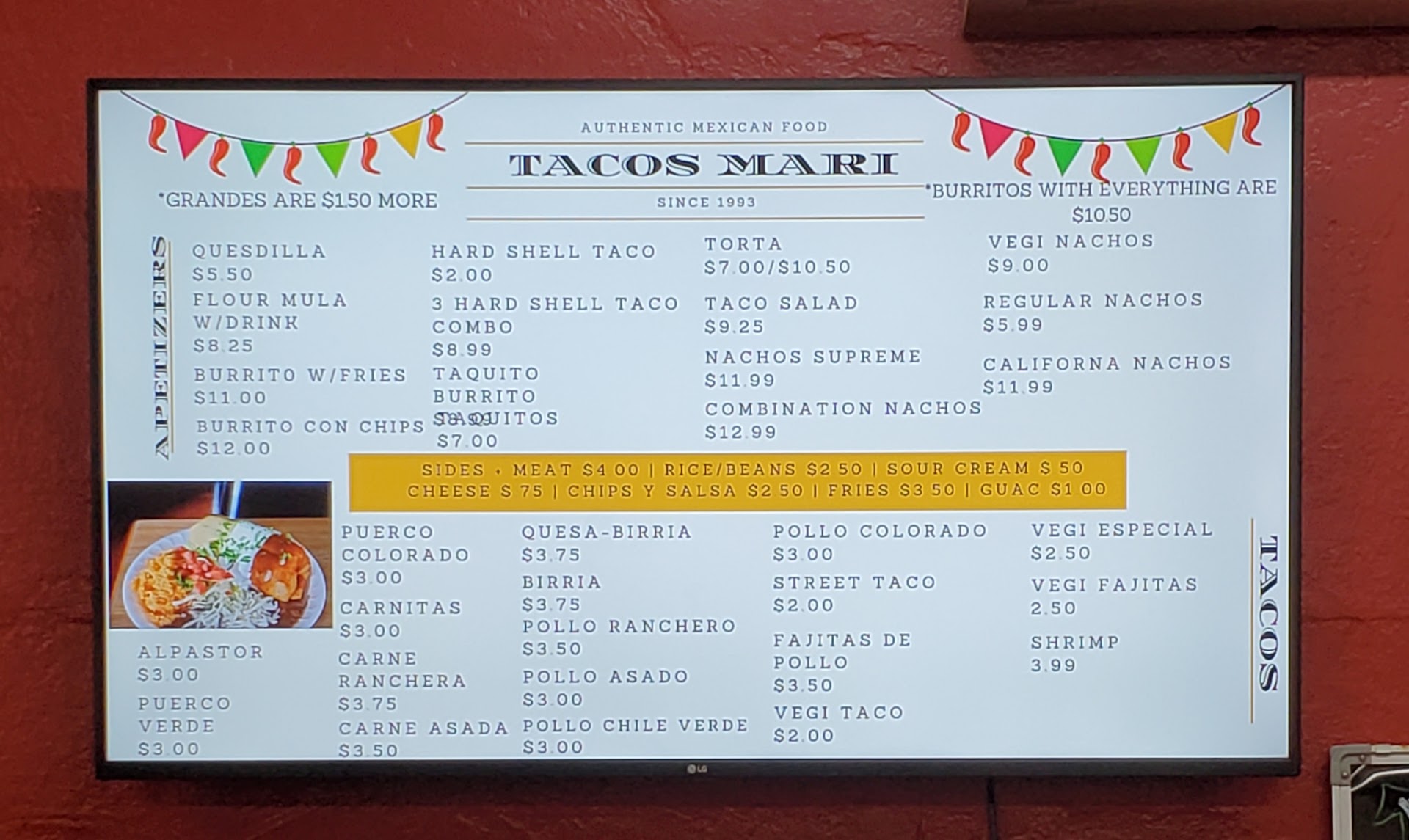 Tacos Mari, also known as Tacos Mary, BETTER known as Tacos de Acapulco, has been a staple in Chico for 20+yrs. Located at 5th & Ivy, this hideaway gem is a treat for longtime residents. Time to tell you why. Went in for lunch to order the Combo Nachos and 2 hard shell Tacos... NO street Tacos this time. The nachos consisted of 2 choices of meat...I chose the Puerco Colorado (rich and flavorful and full of sauce) and chicken over the chips, then came the lettuce, tomato, onions, sour cream, avocado, and jalapeños. It weighs well over 3lbs, and can't be eaten in 1 sitting. The tacos were basic chicken, lettuce, tomato, and a red sauce in a crunchy shell...but the chicken is anything but basic. Shredded perfectly, and seasoned just right with a hint of spice to warm the tongue. Folks, you simply can't go wrong with anything on this menu. It's hard to stay in business for so long without perfecting your craft...and they have!! This is just 1 reason I've been frequenting this establishment for SO LONG. 1 small notice...NO radishes, to which I'm thankful. Just try this place once, order your favorite dish, and see for yourself. Tacos Mari ranks in the top 5-10% in town....
