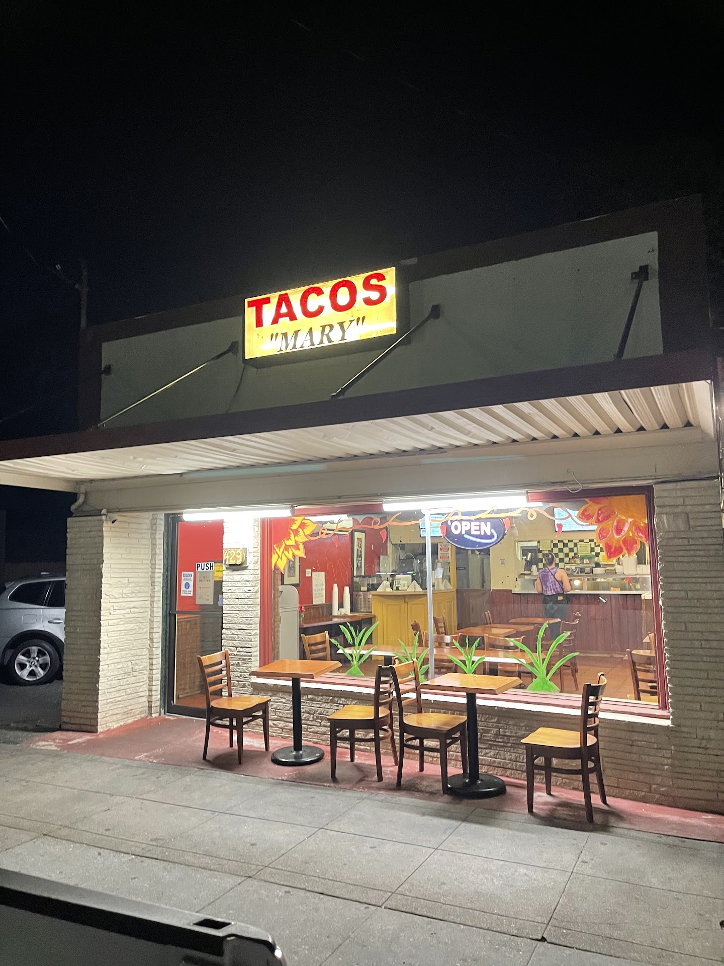 Read moreFirst of all, I was looking for food in the middle of the week during the super late night hours (midnight+). Outside of the weekend options are understandably limited. However, my late night Google search was pleasantly helpful. While my choices were few, Tacos Mary answered the prayers of my growling stomach. The fact that they were open at such an ungodly hour in the middle of the week is a huge plus, but let's judge the food.